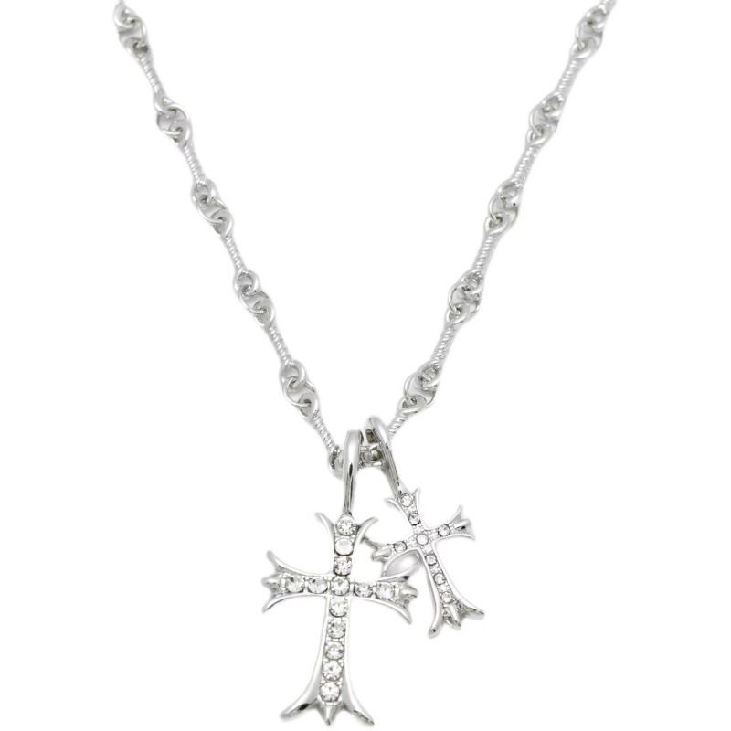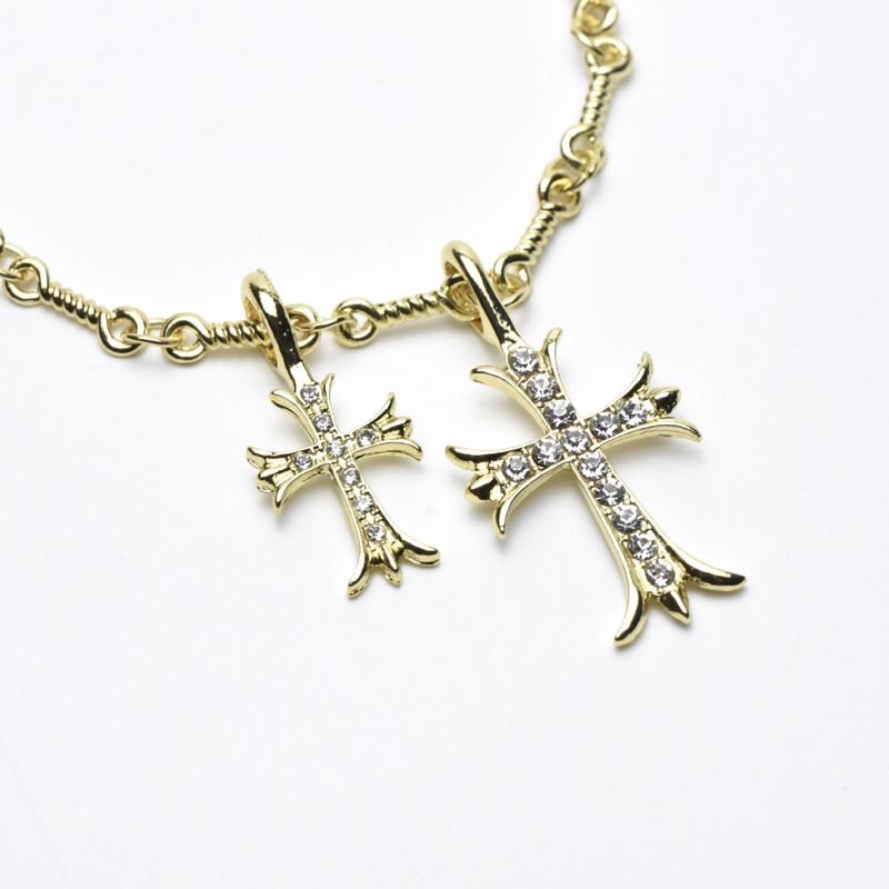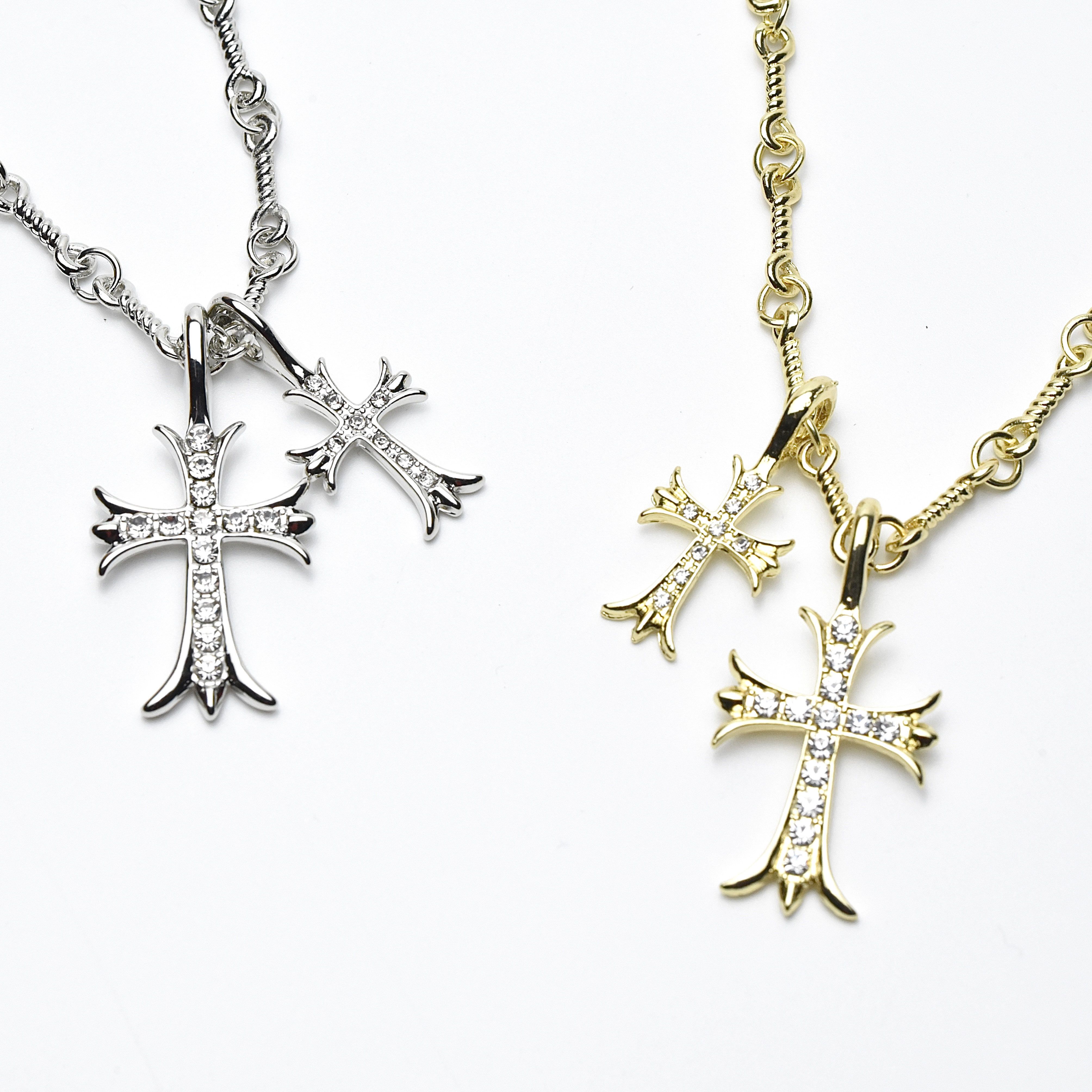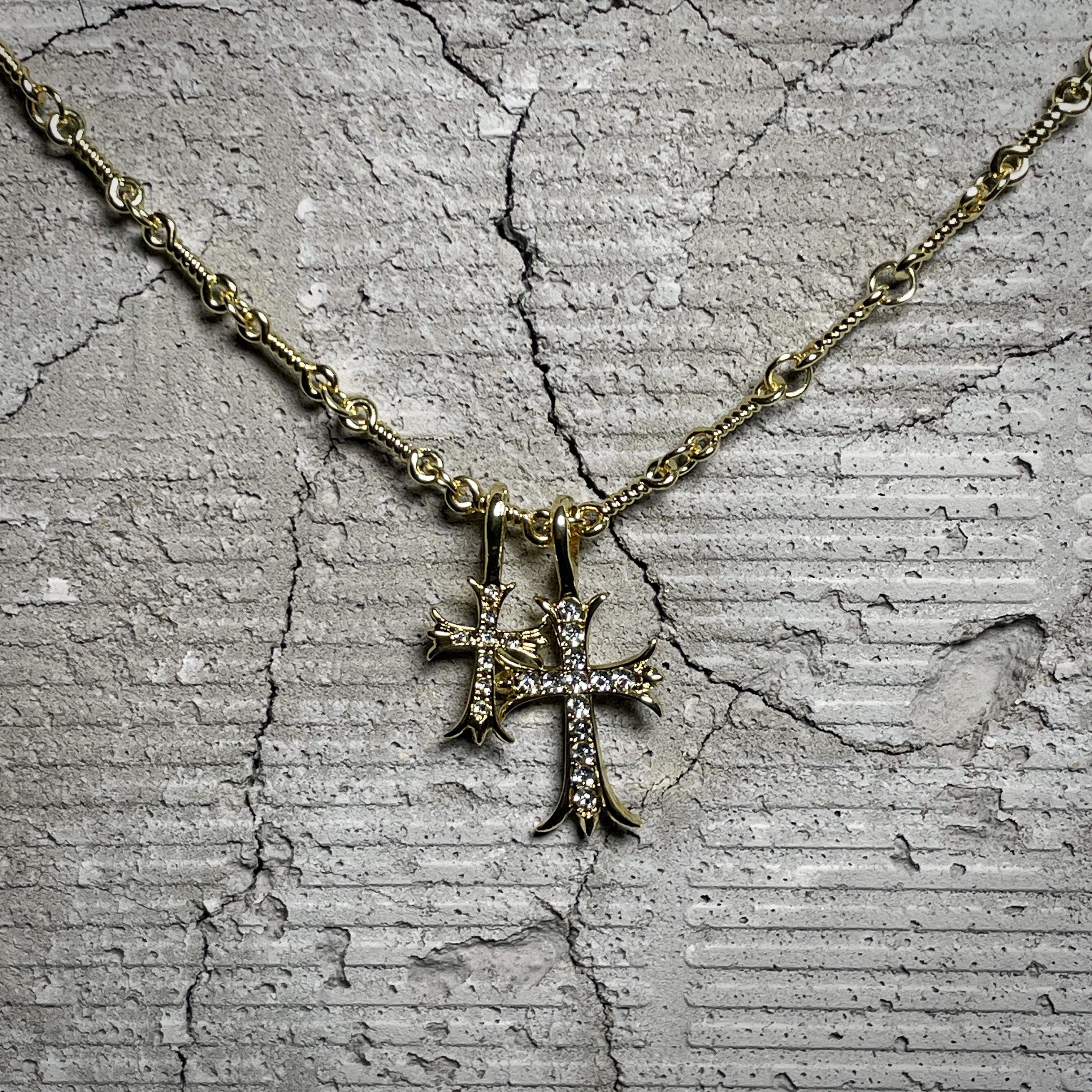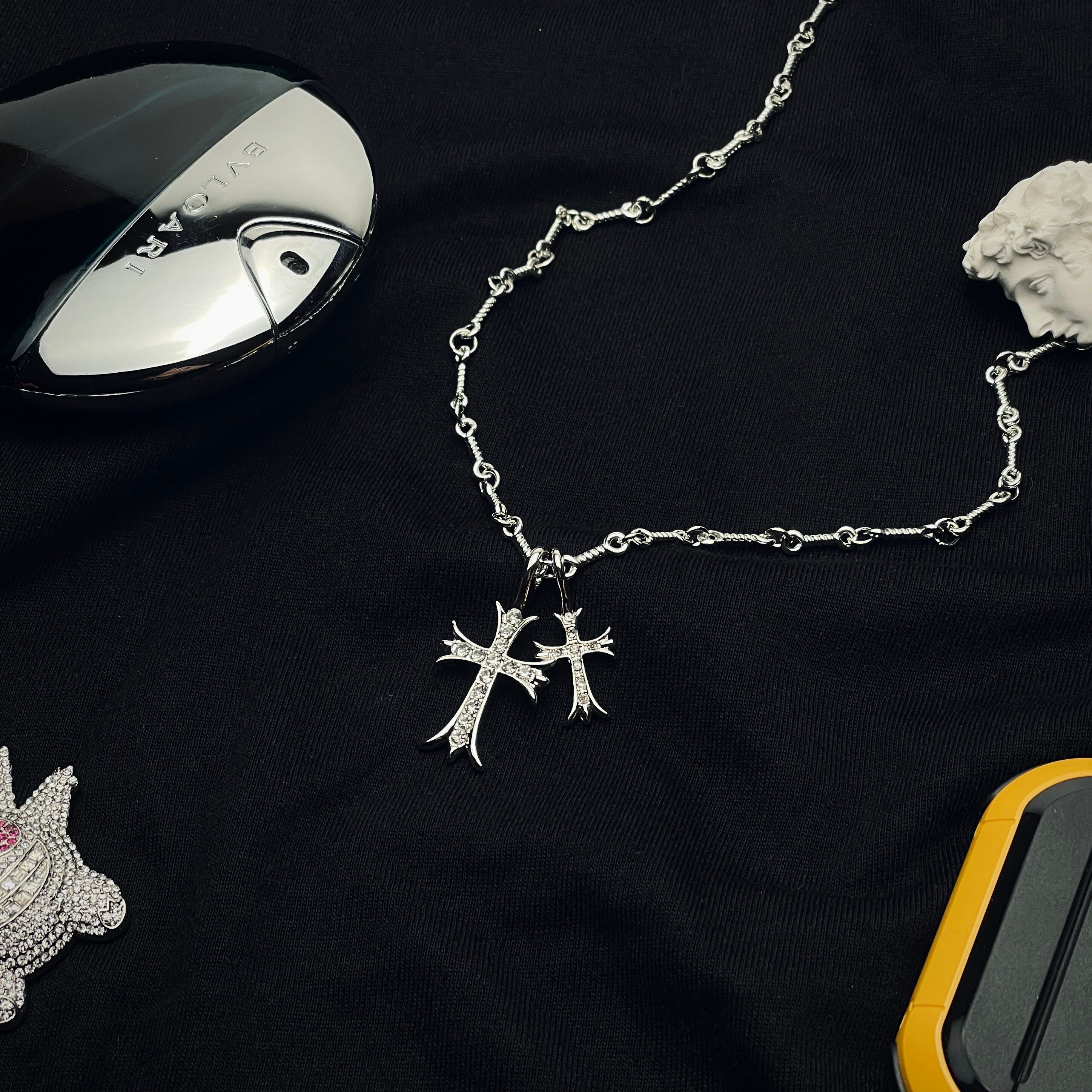CH Fashion: Diamond-encrusted Double Cross Pendant Necklace for Women – Simple Collar-Length Necklace for Men and Couples