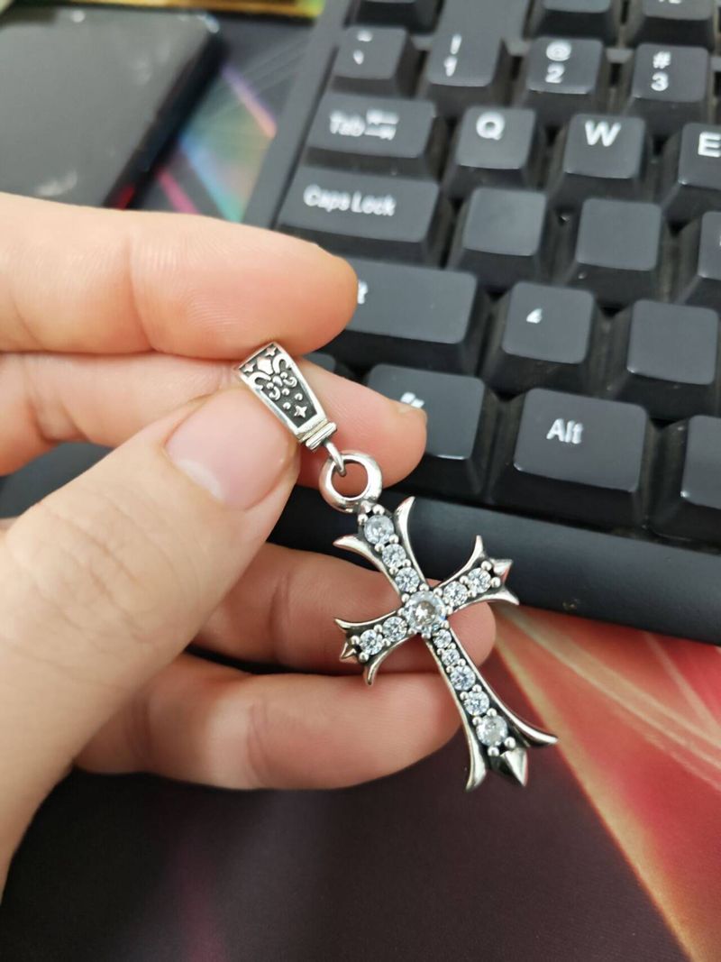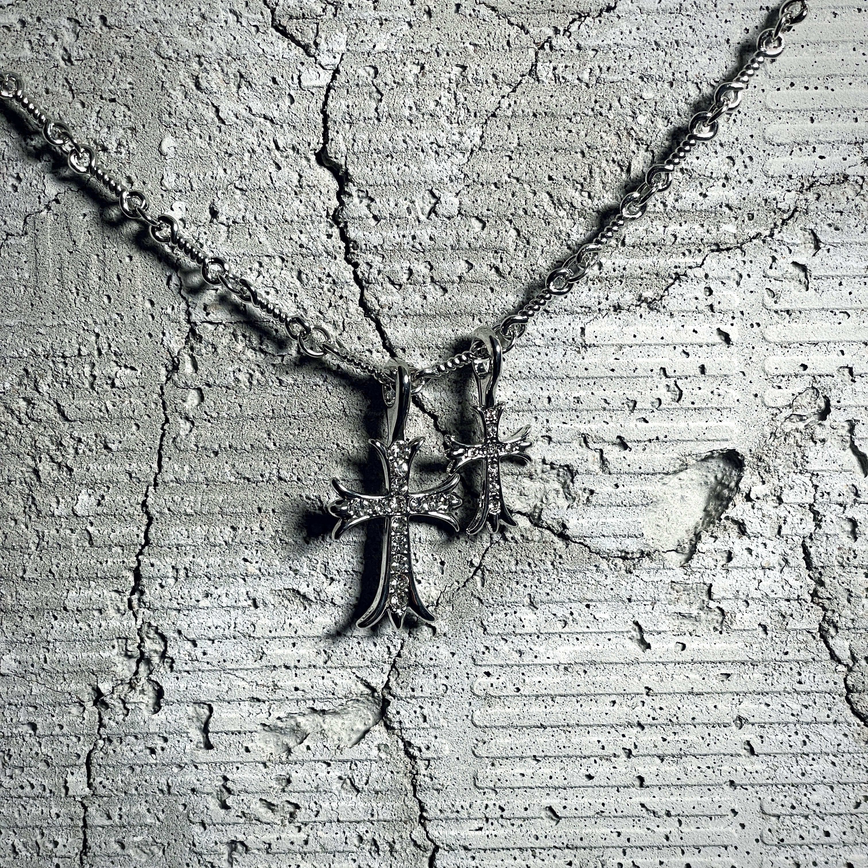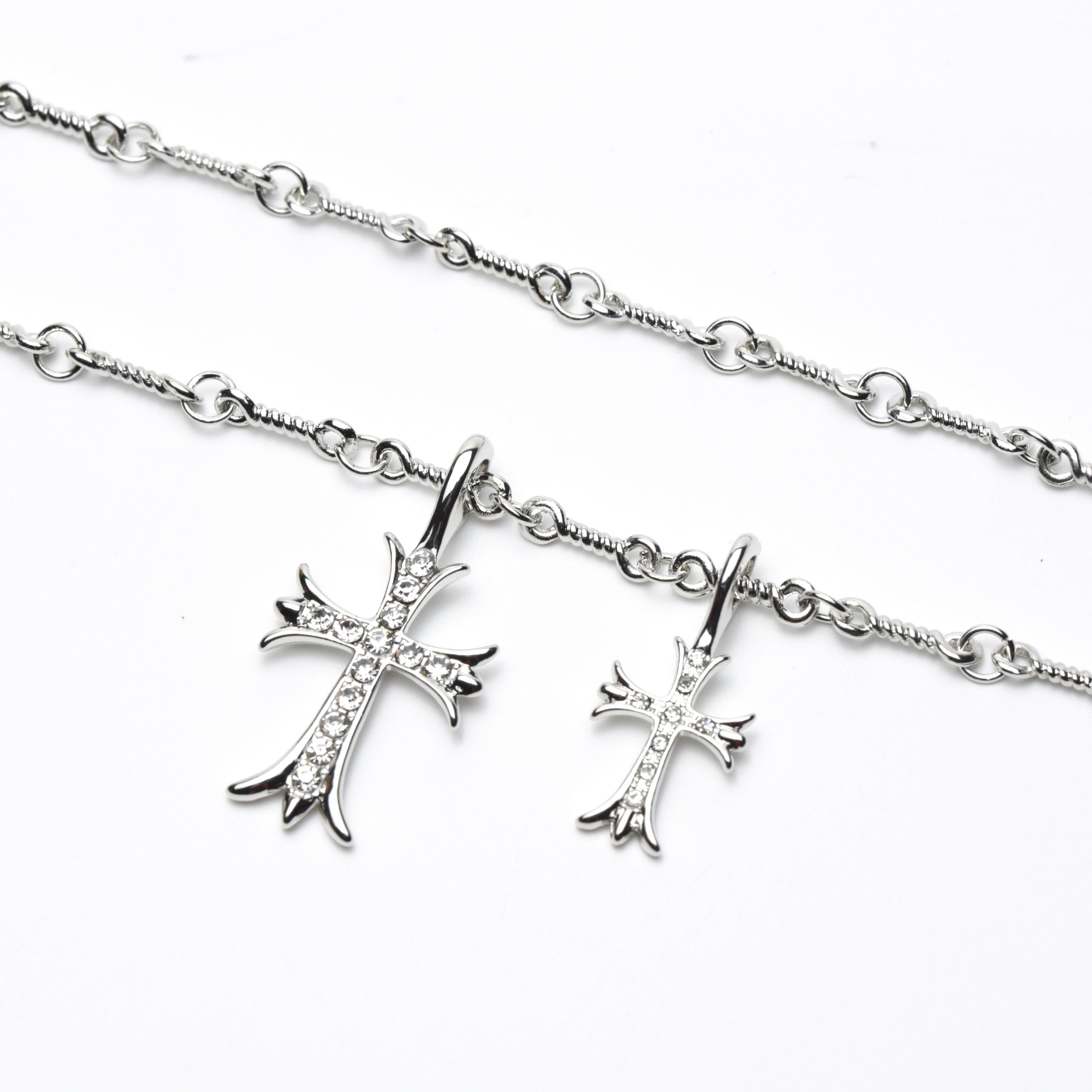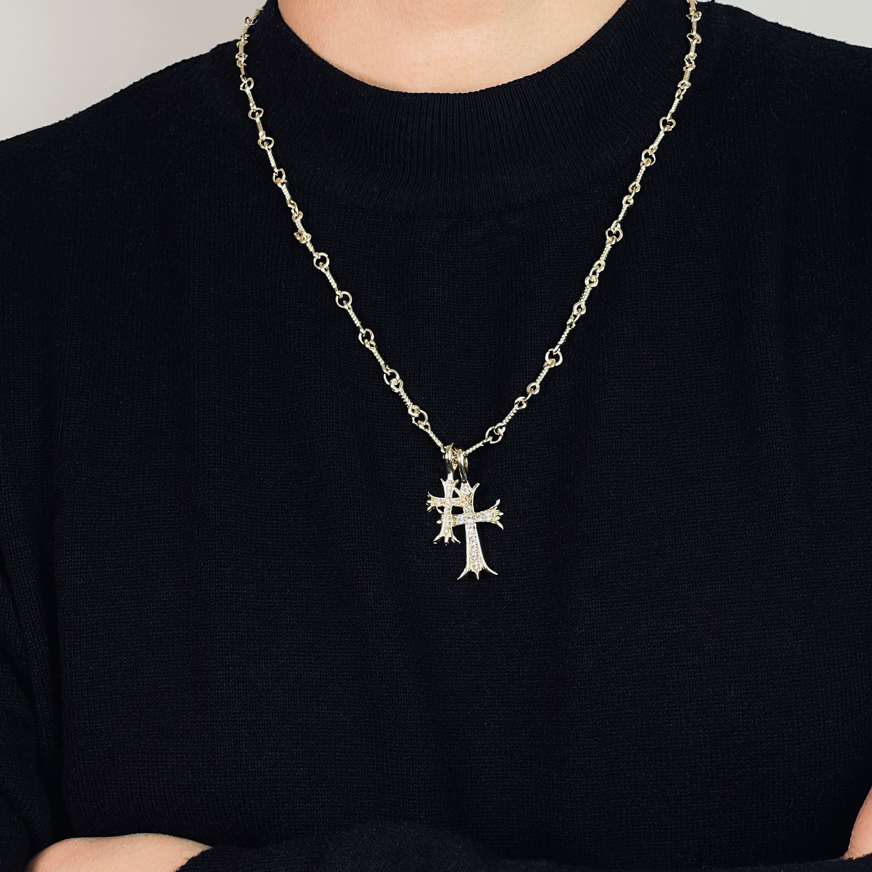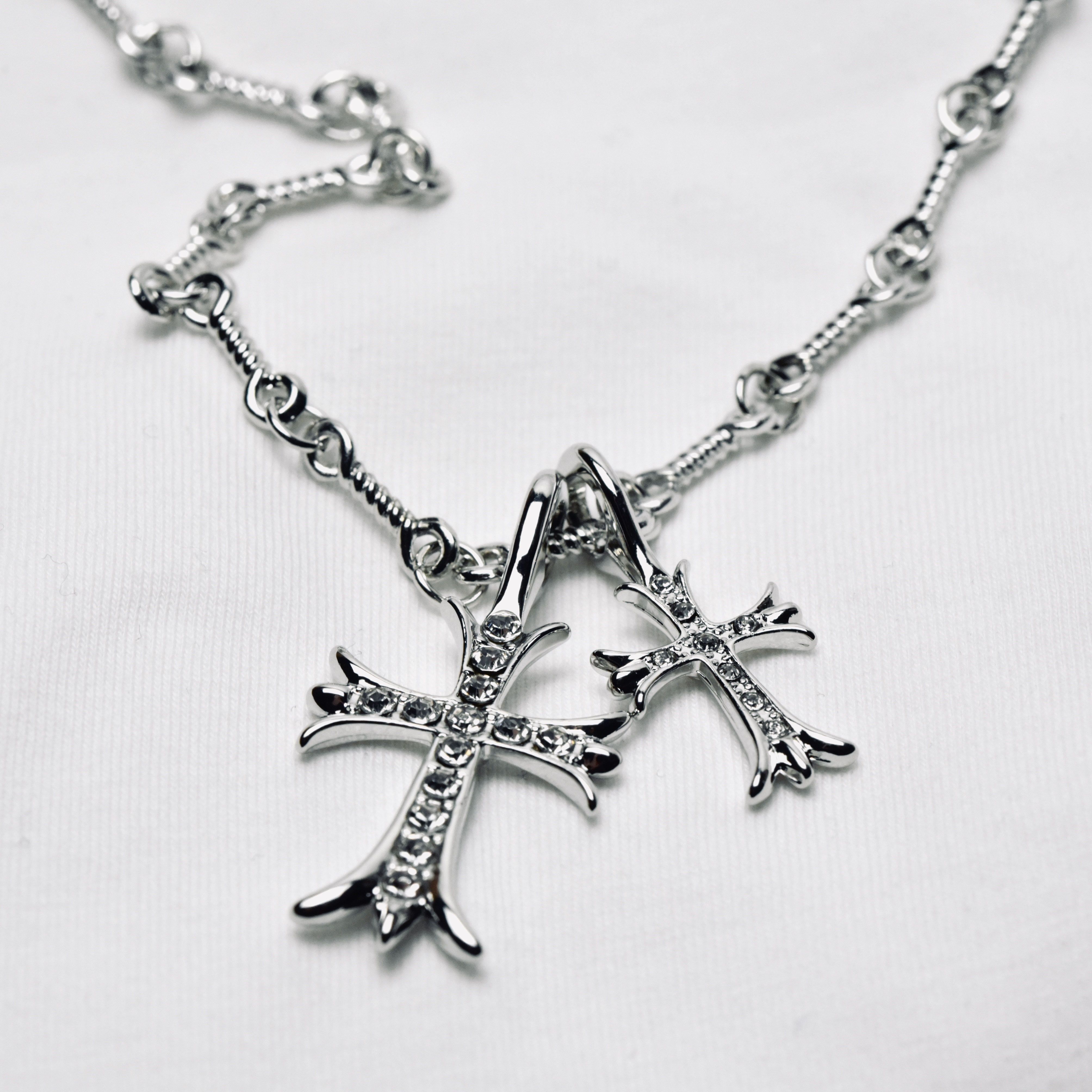 CH Fashion: Diamond-encrusted Double Cross Pendant Necklace for Women – Simple Collar-Length Necklace for Men and Couples