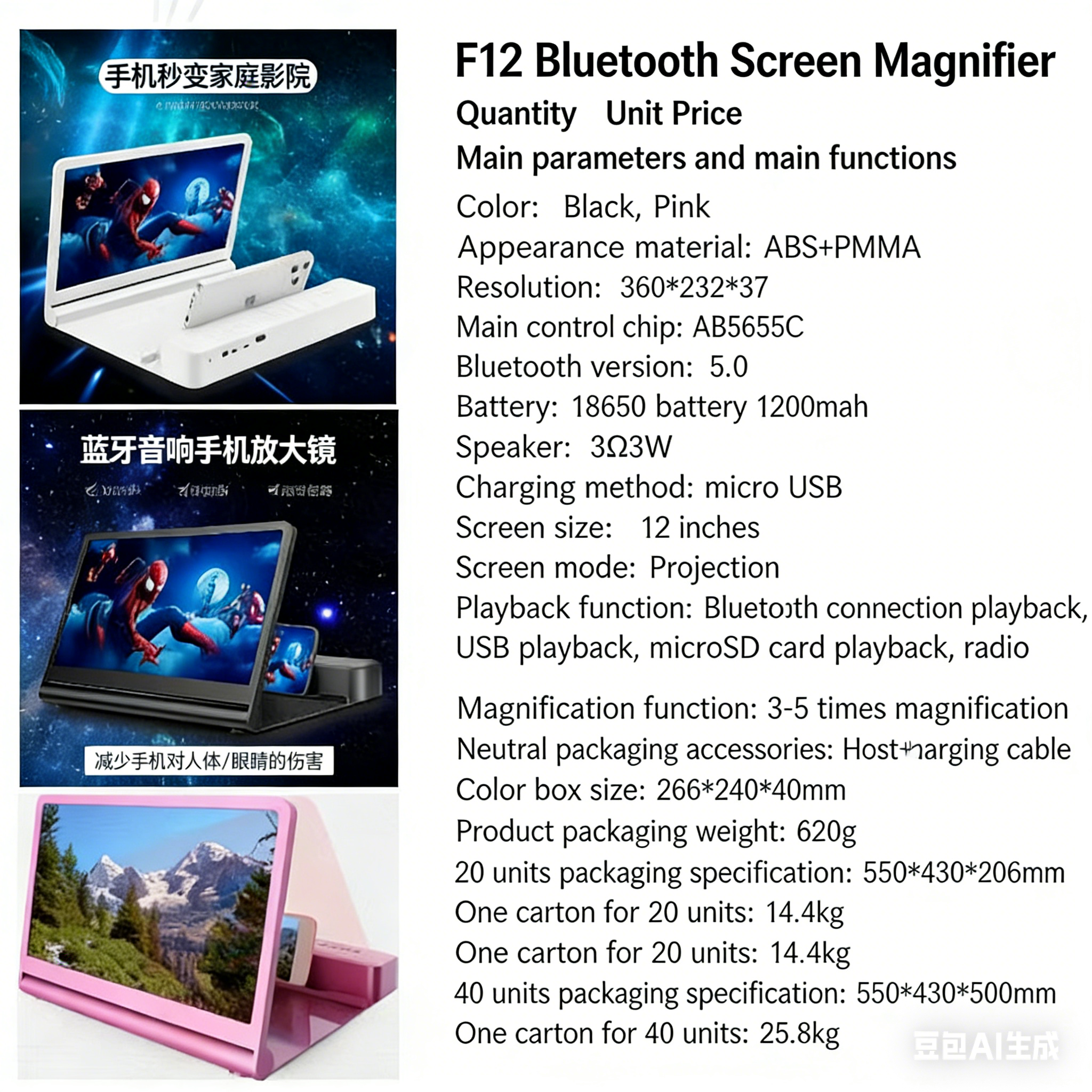 F12 Bluetooth Speaker with Phone Screen Magnifier - Hot-Selling HD 3D Video Stand
