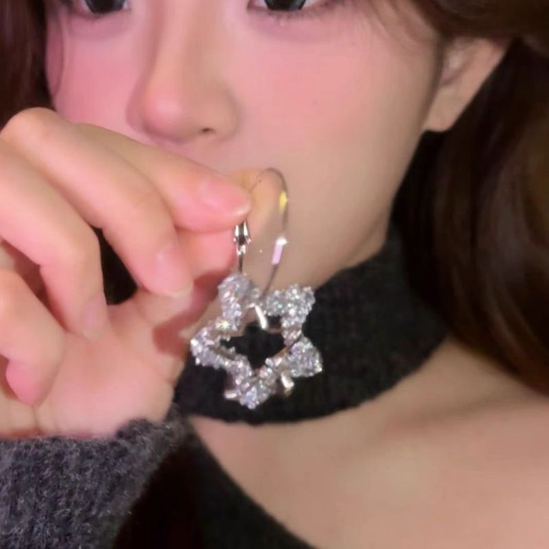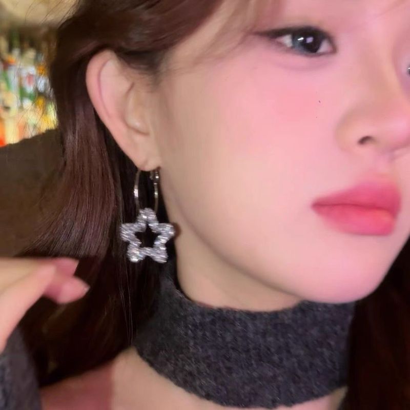Fashionable Sweet & Edgy Diamond-Studded Geometric Star Hoop Earrings and Five-Pointed Star Earrings: Versatile, Stylish Earrings