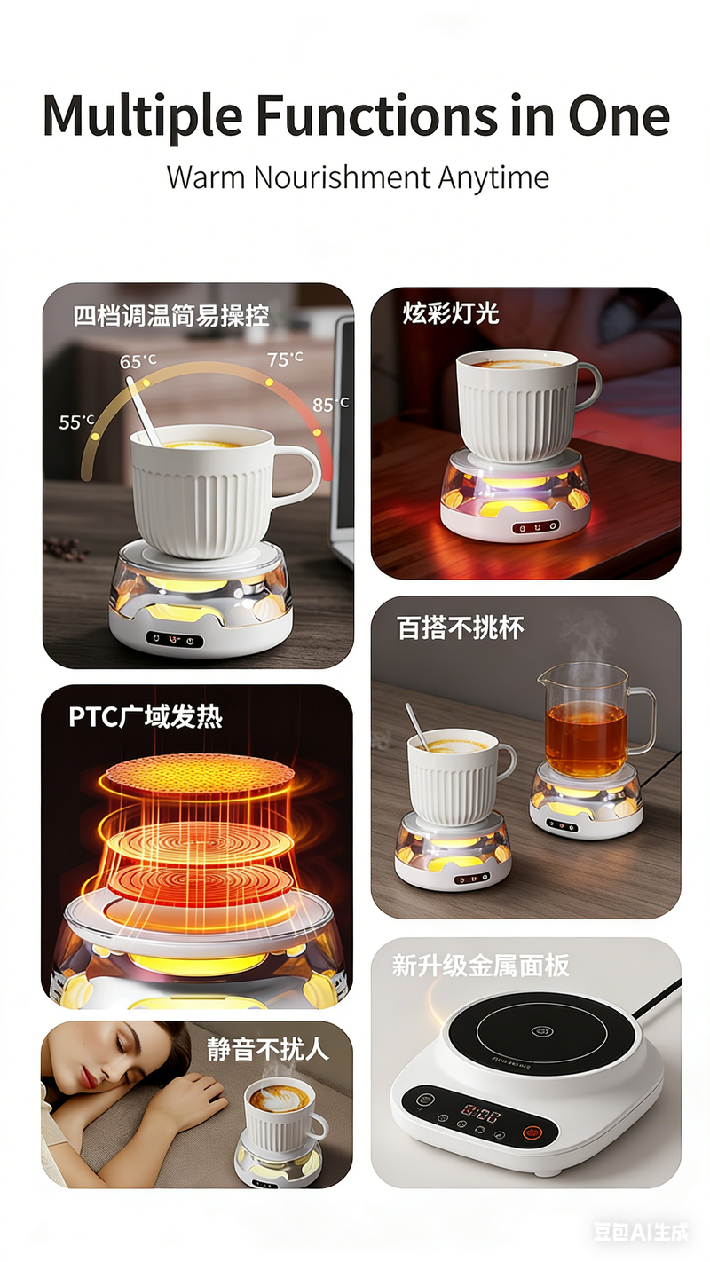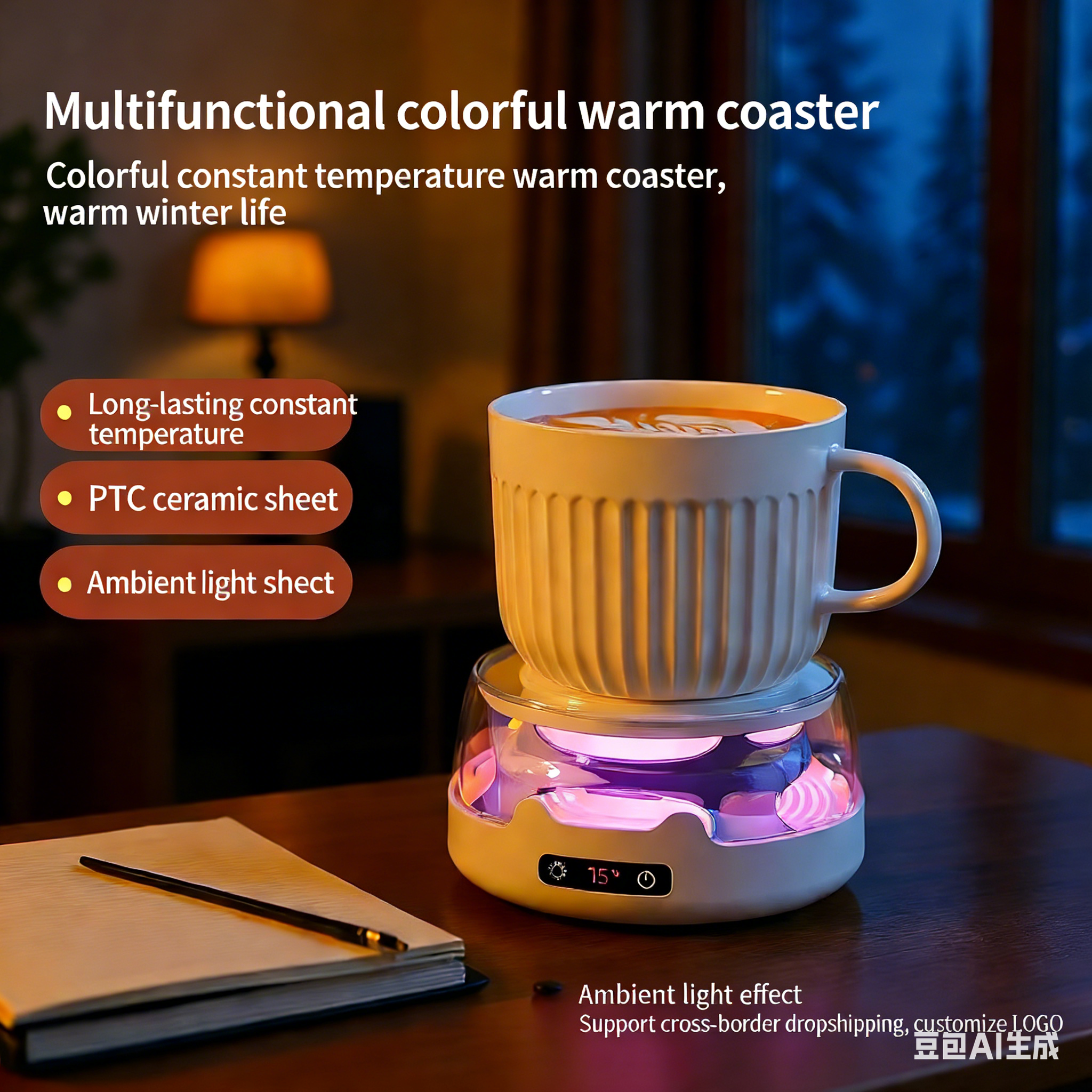 Fourth-Generation Smart Heating Coaster Home Use Constant Temperature Coaster Office Coffee Warmer Ambient Lighting