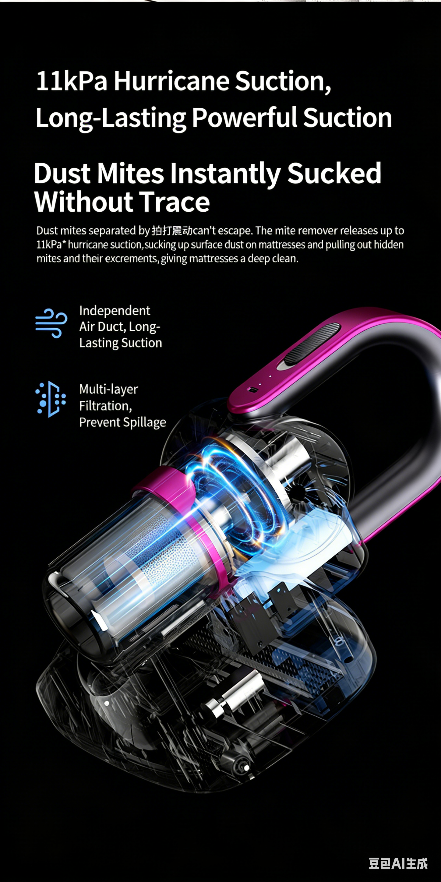 High-Suction Bed UV Sterilizing Carpet Mite Remover Wireless All-in-One Smart Vacuum Cleaner