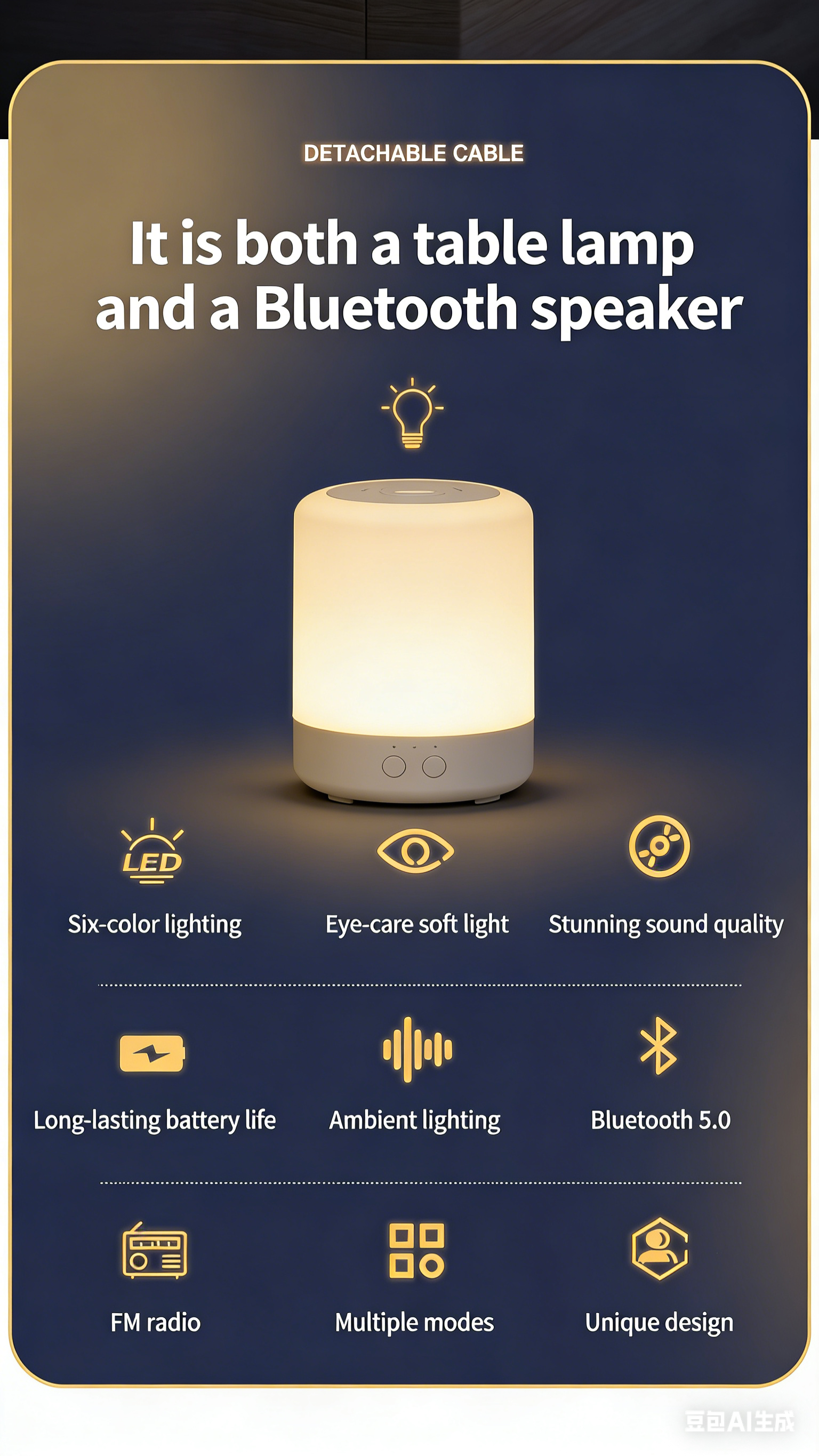 JY-85 Bluetooth Speaker Desk Lamp Multifunctional Wireless Card-Slot FM Radio Desk Lamp with Bluetooth Speaker