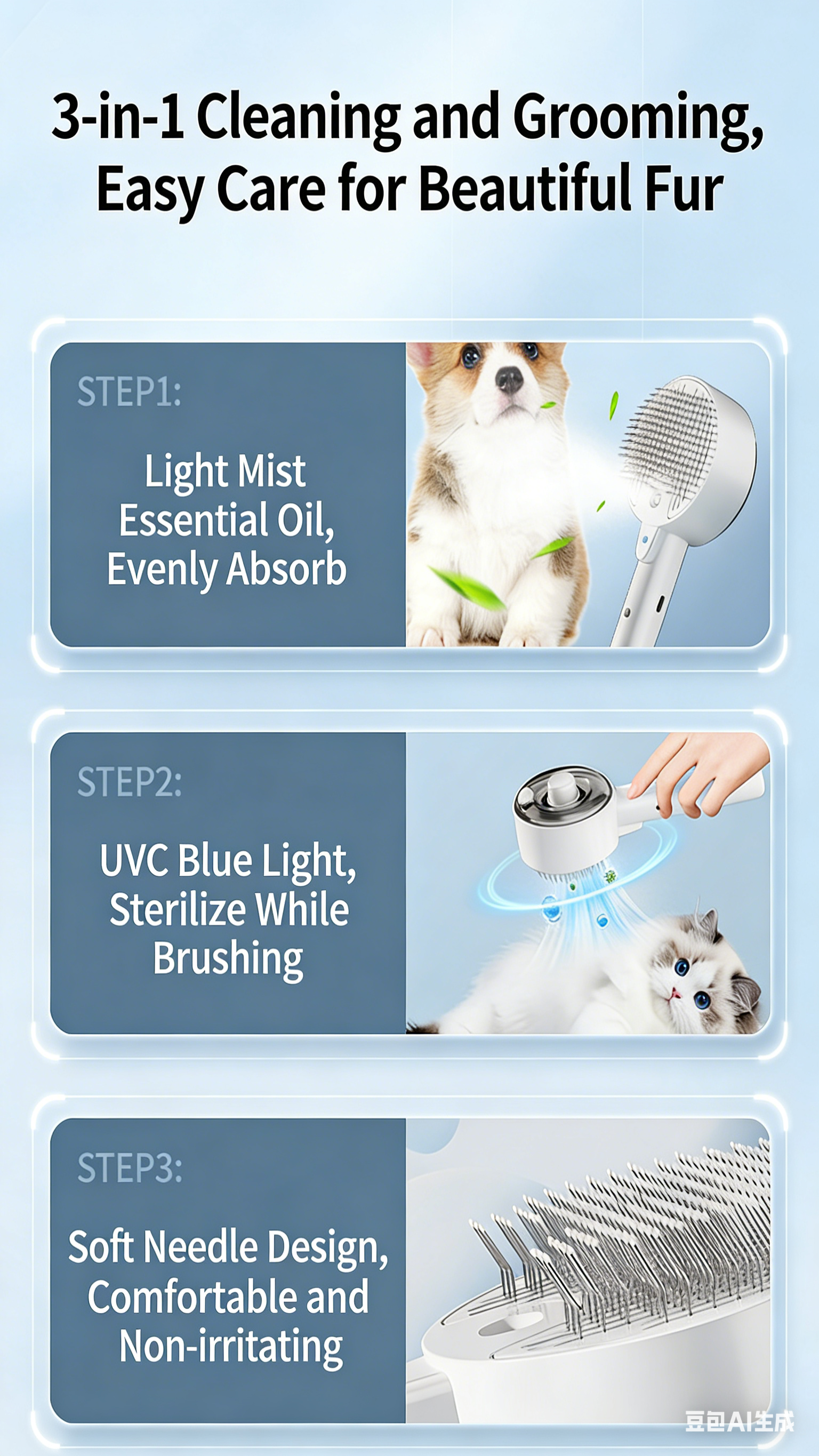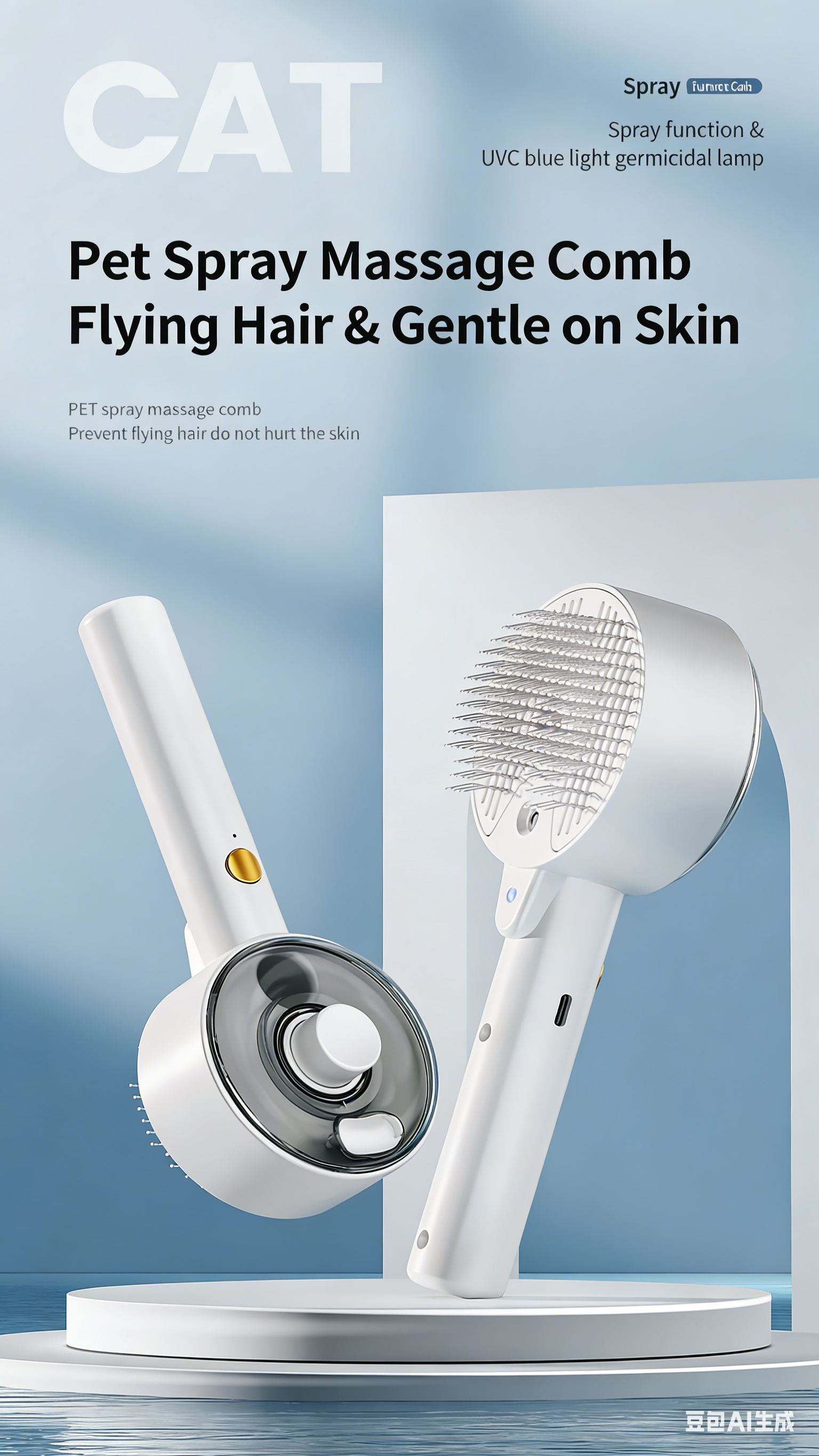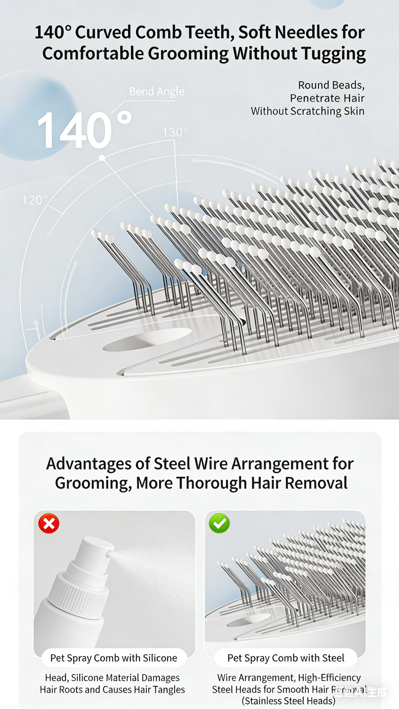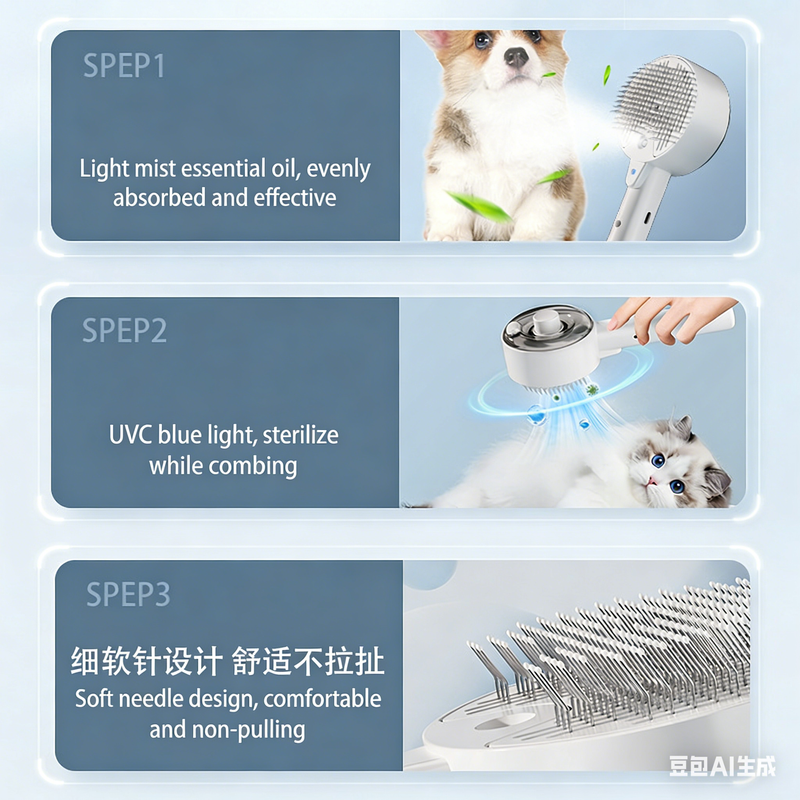 Pet Dog and Cat Spray Massage Comb One-Touch Hair Removal and Grooming Tool UV Sterilization and Mite Removal
