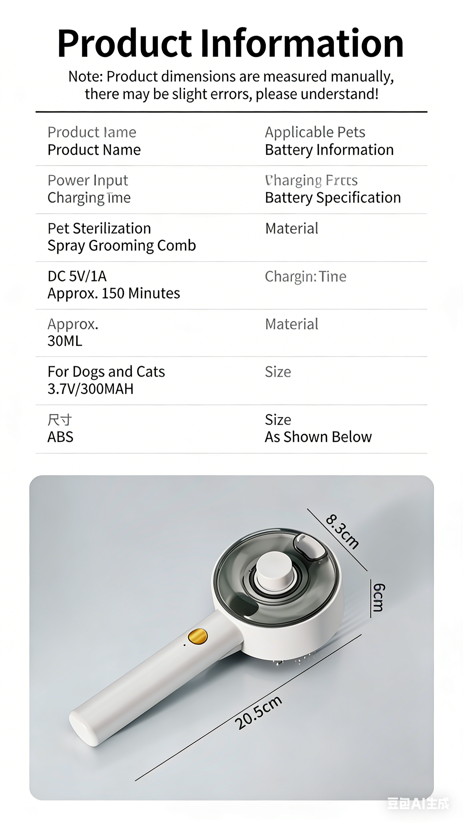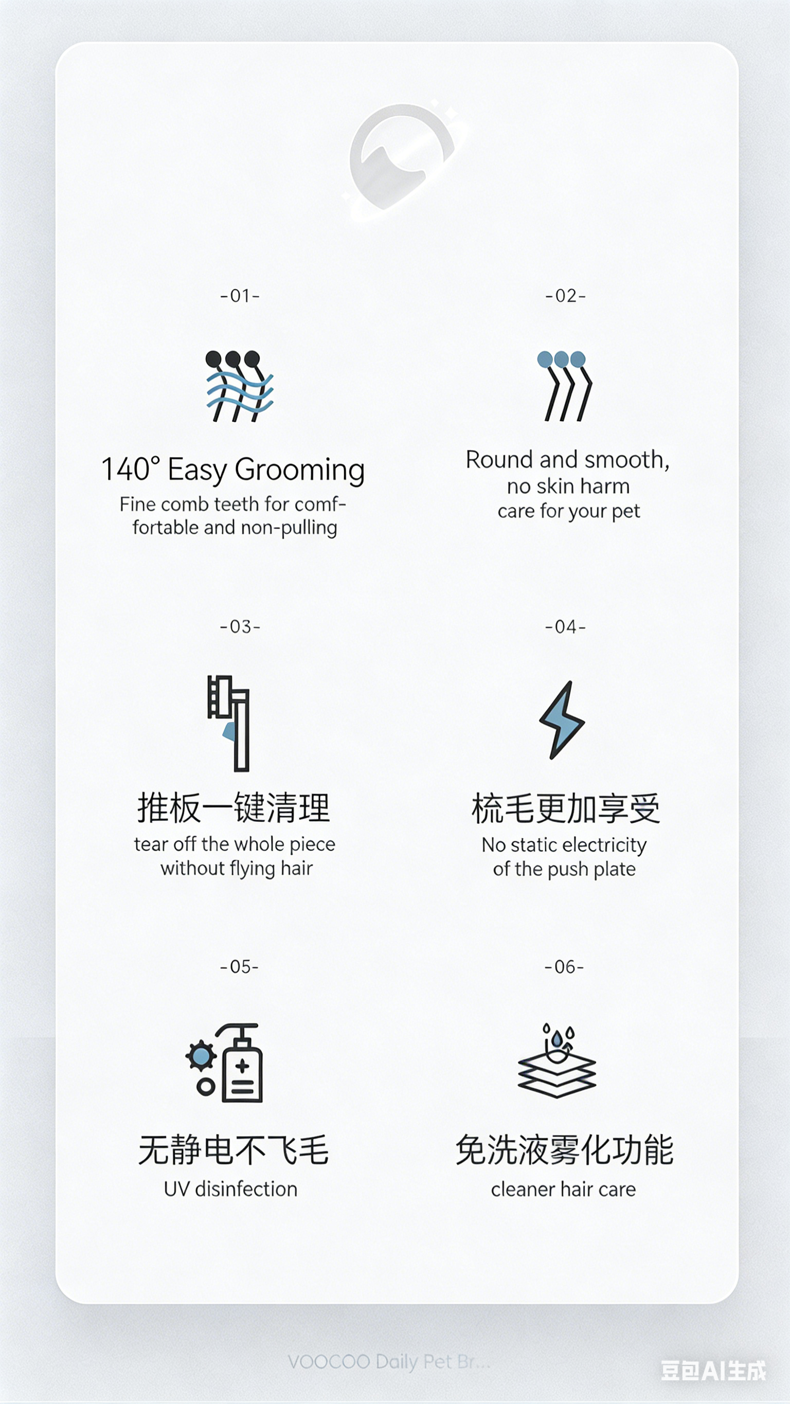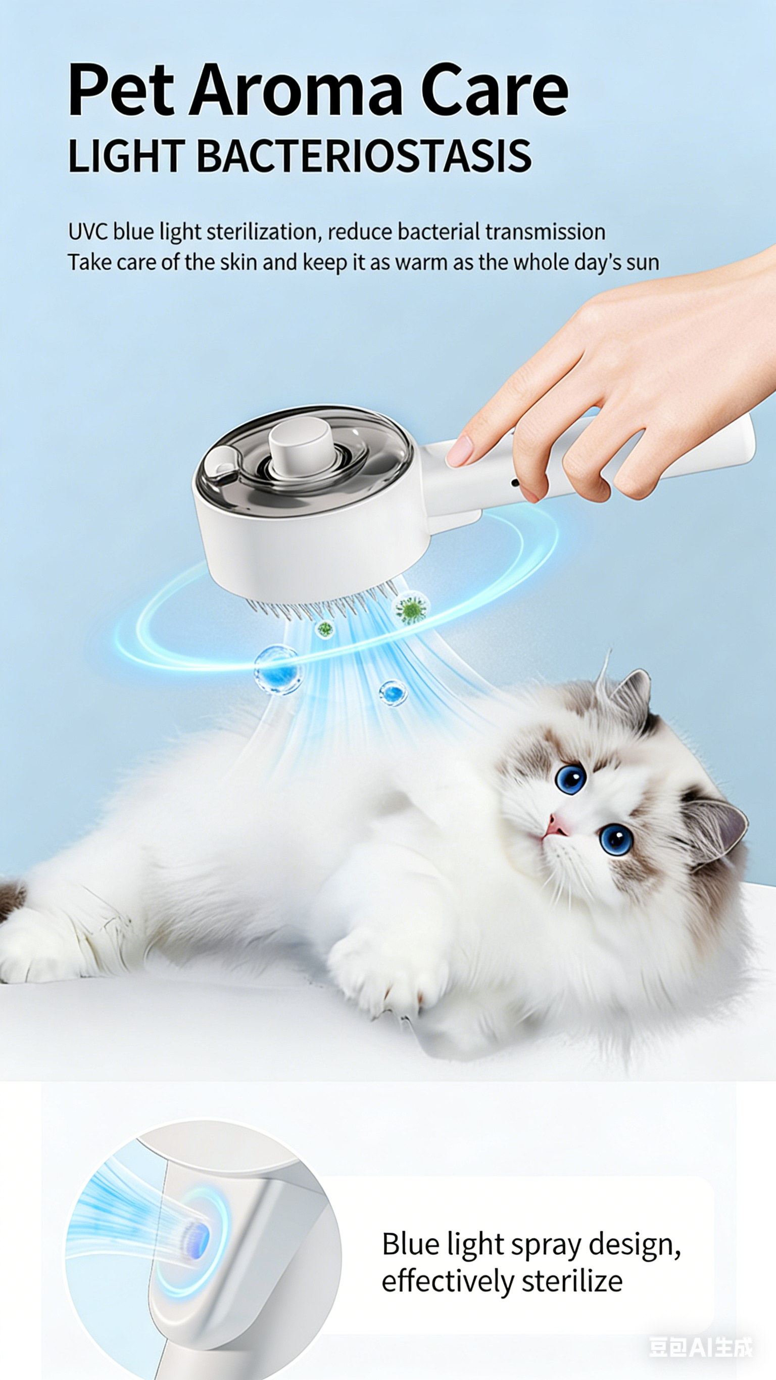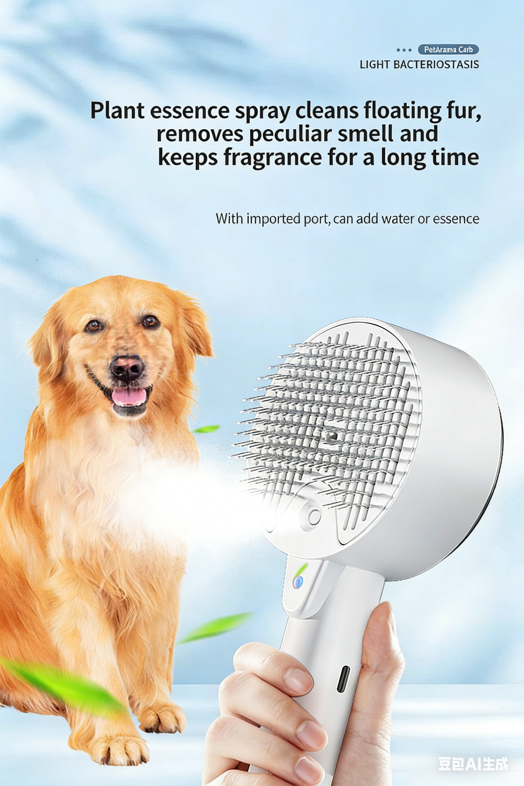 Pet Dog and Cat Spray Massage Comb One-Touch Hair Removal and Grooming Tool UV Sterilization and Mite Removal