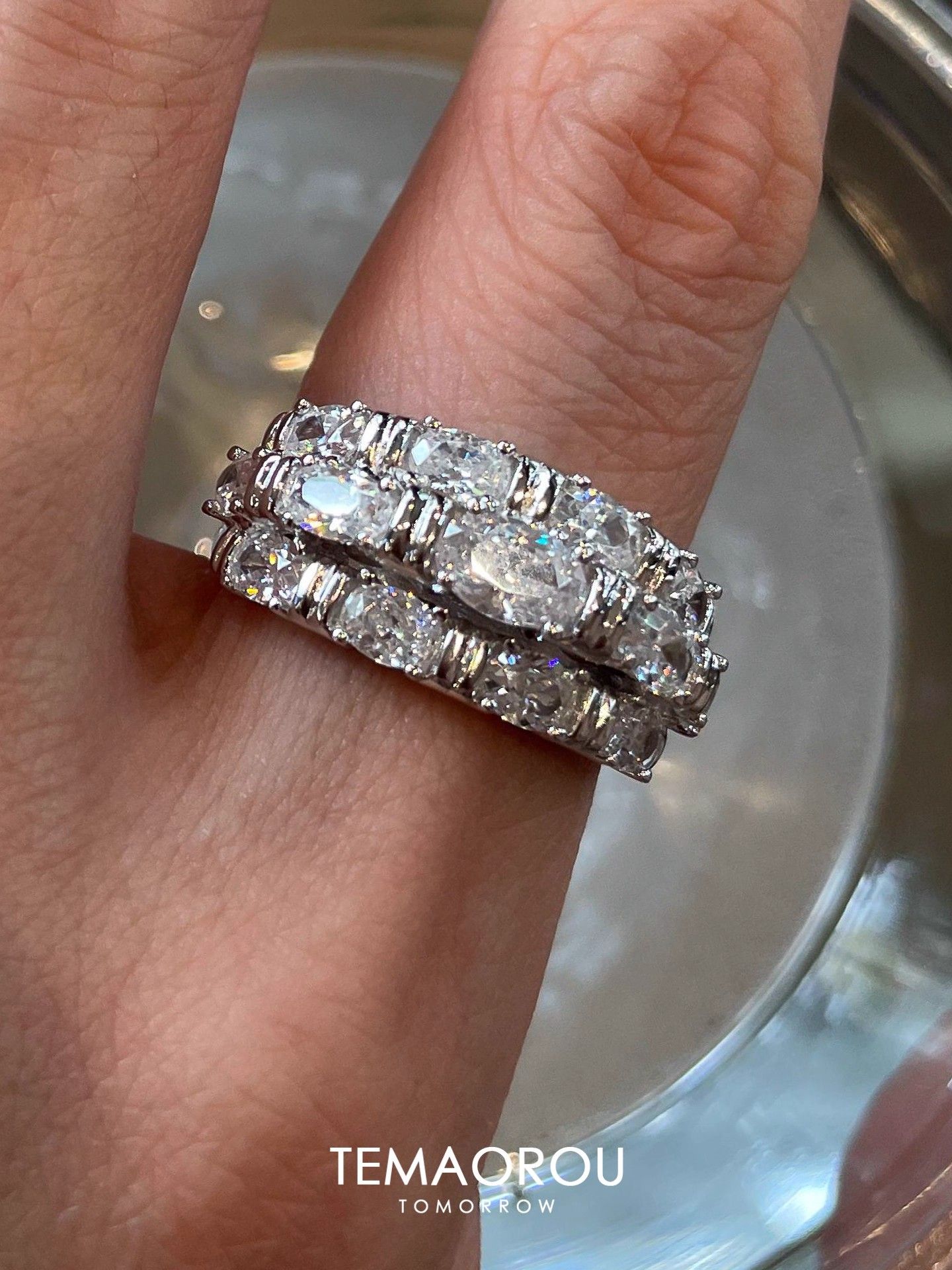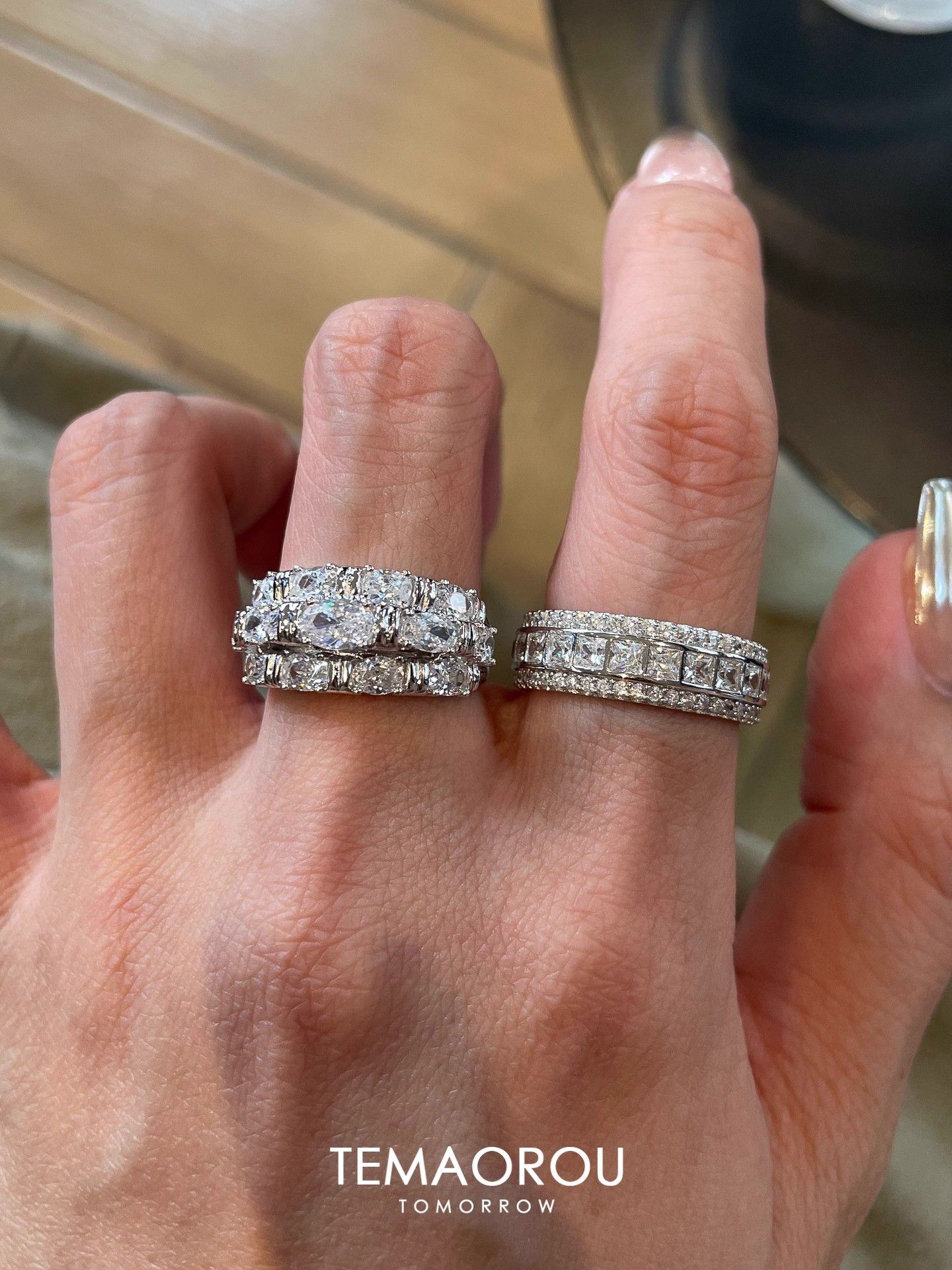 Unique Vintage Layered Ring Set: Exquisite, Heavy-Duty Rhinestone Design with Dazzling Sparkle for a Luxurious, Elegant Look (Set of Two: A+C Styles)