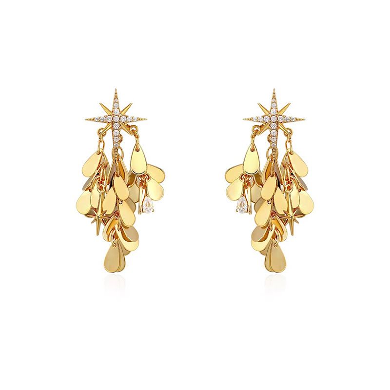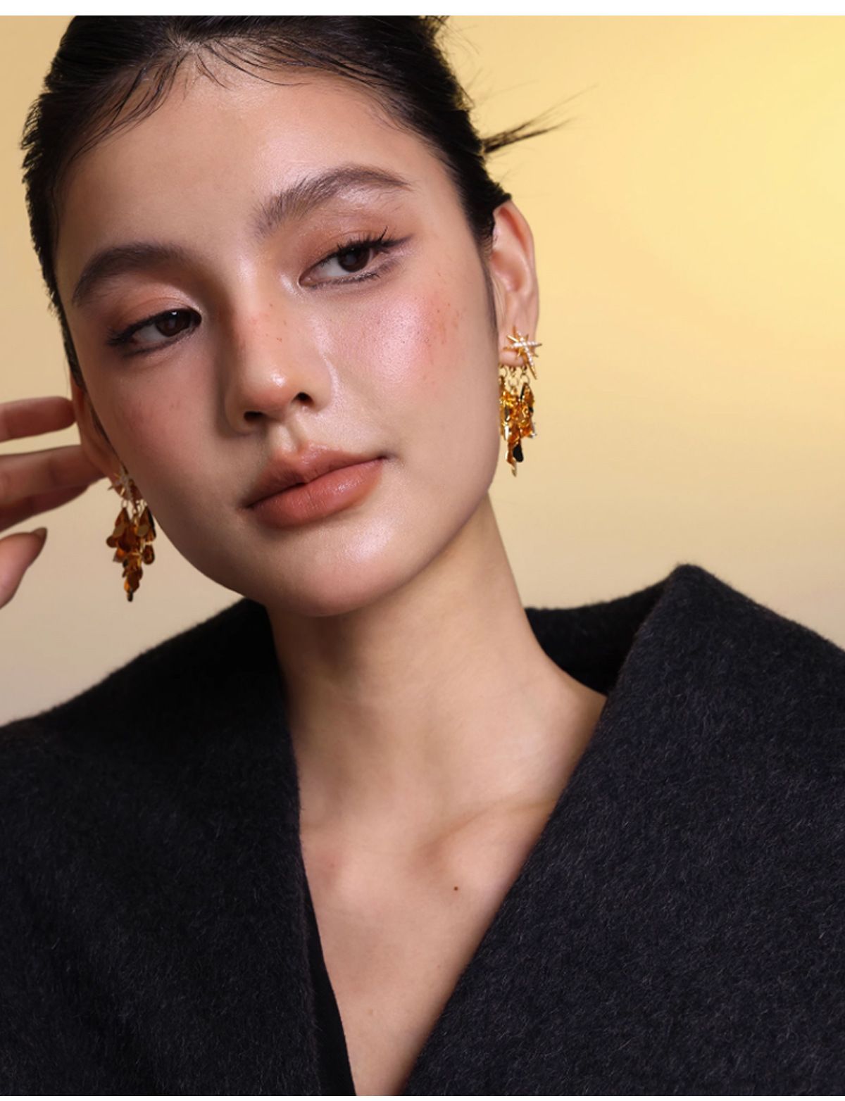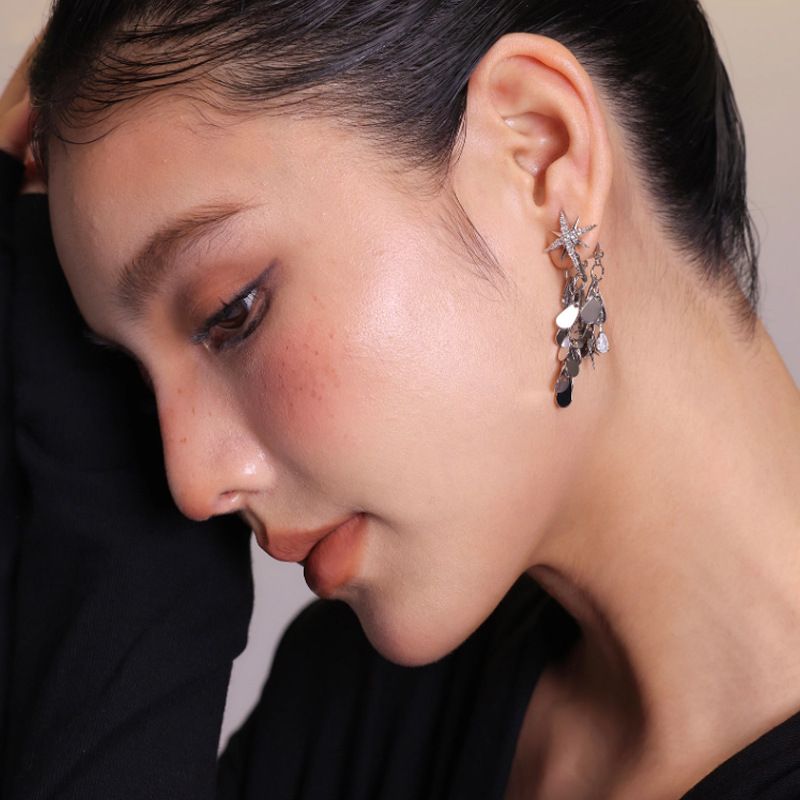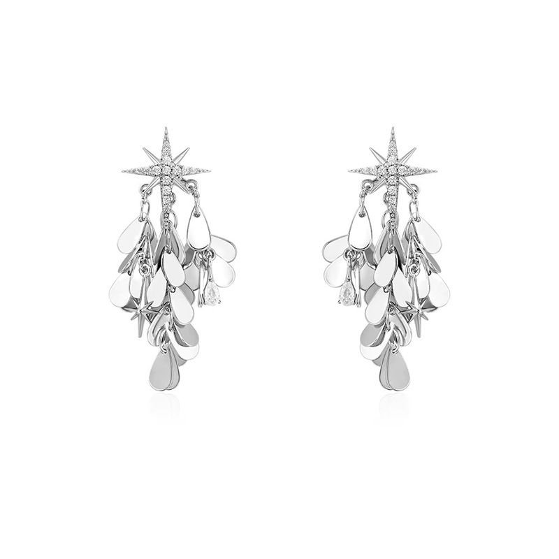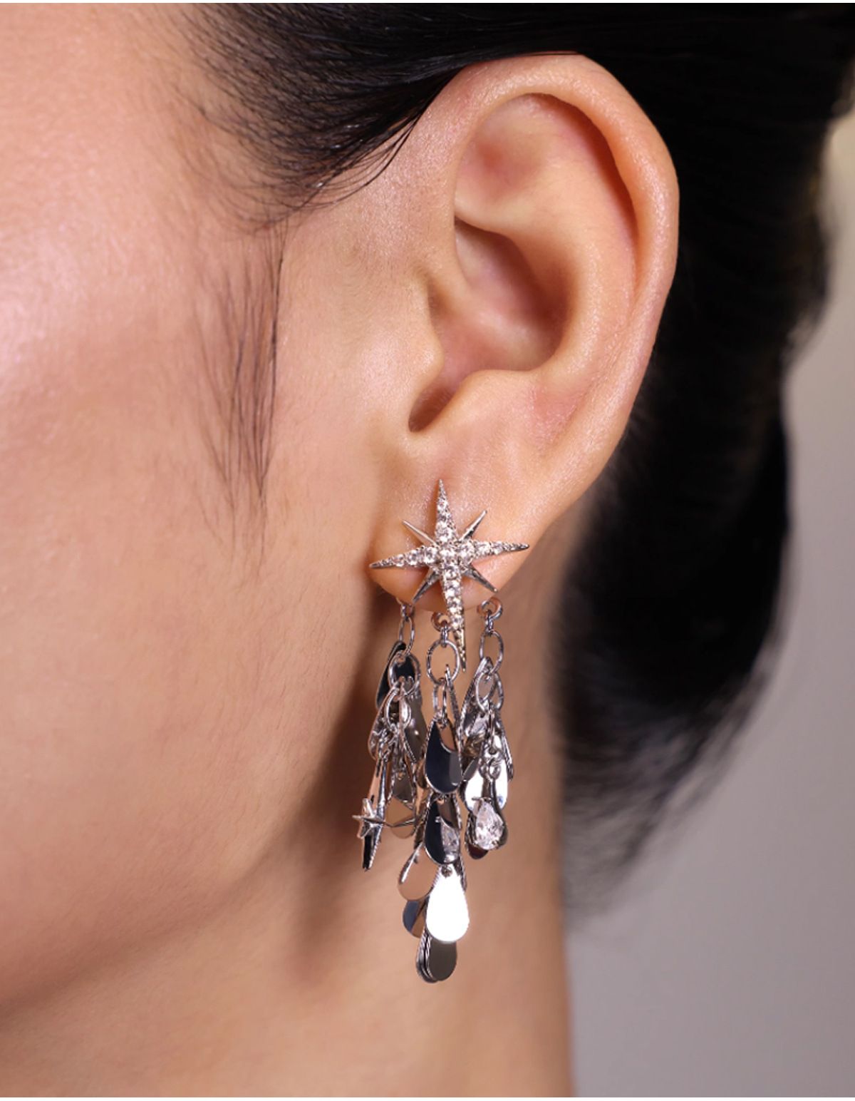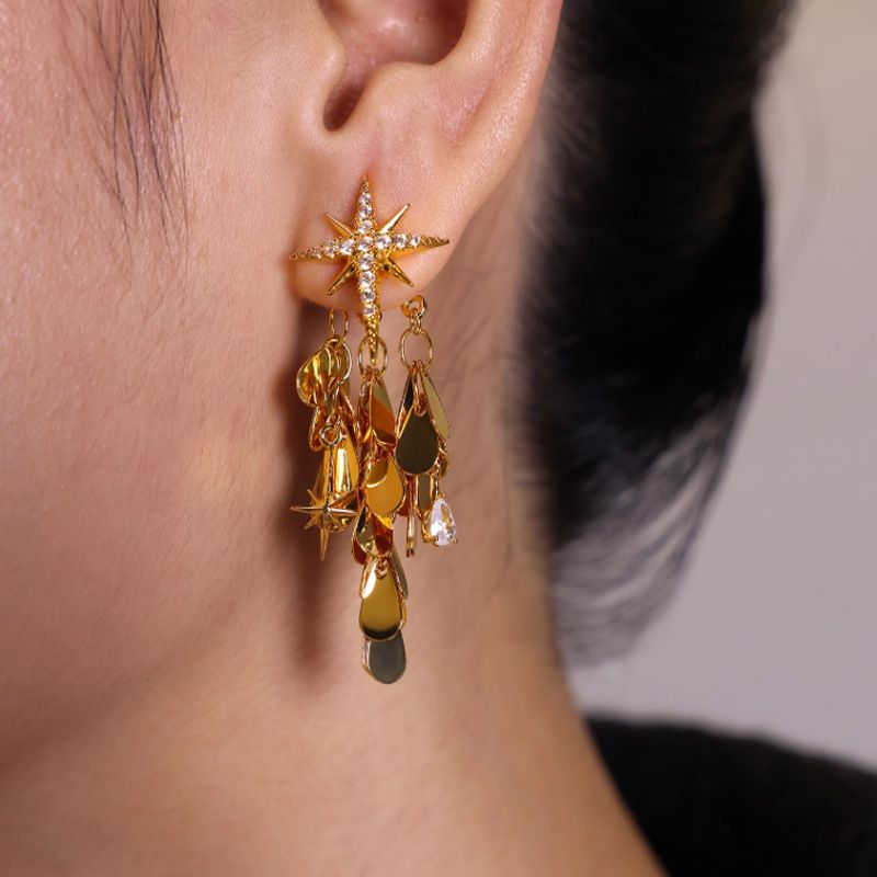 Eight-Pointed Star Zircon Sparkling Star Double-Wear Fringe Earrings Women's Light Luxury High-End Fashion Stud Earrings