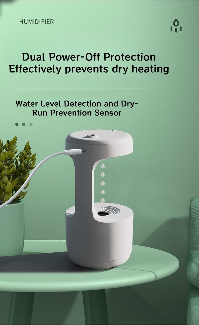 Anti-Gravity Water Drop Reverse Flow Humidifier