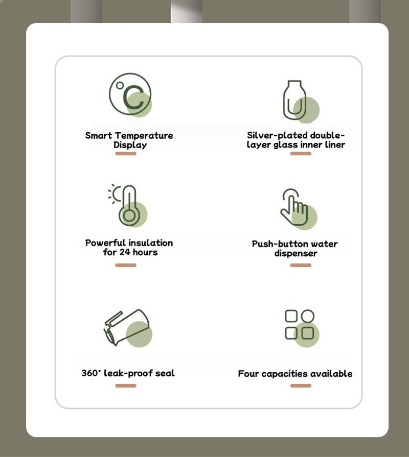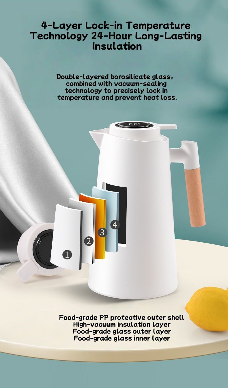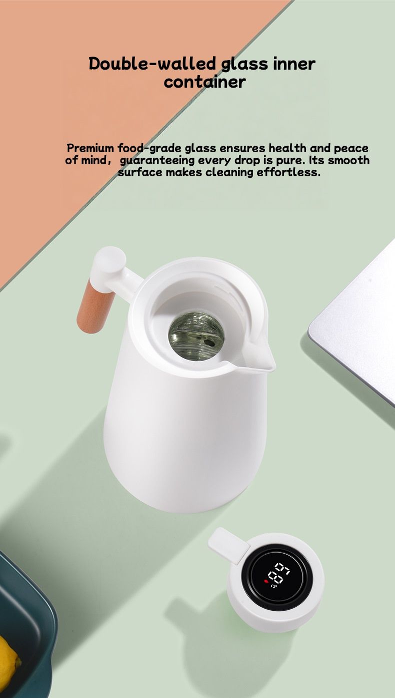 Digital Display Push-Button Thermos Flask Large-Capacity Glass-Lined Insulated Kettle