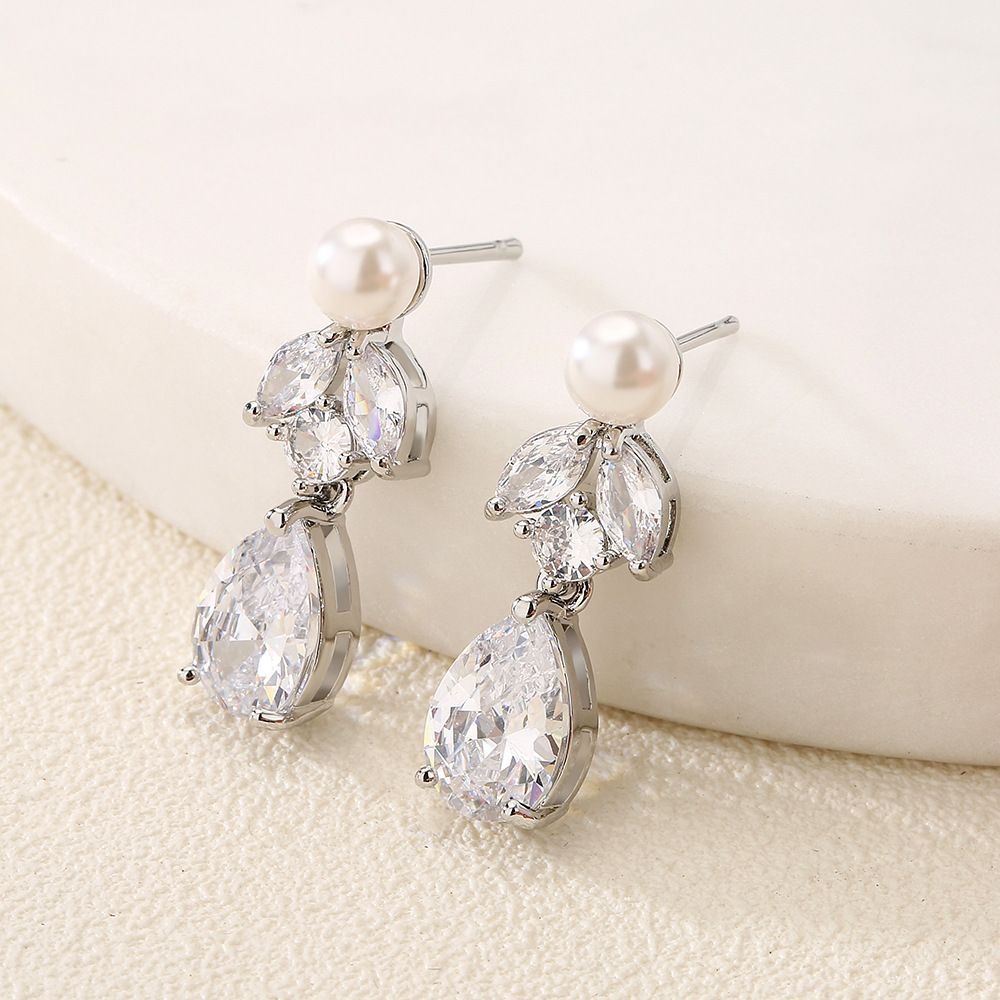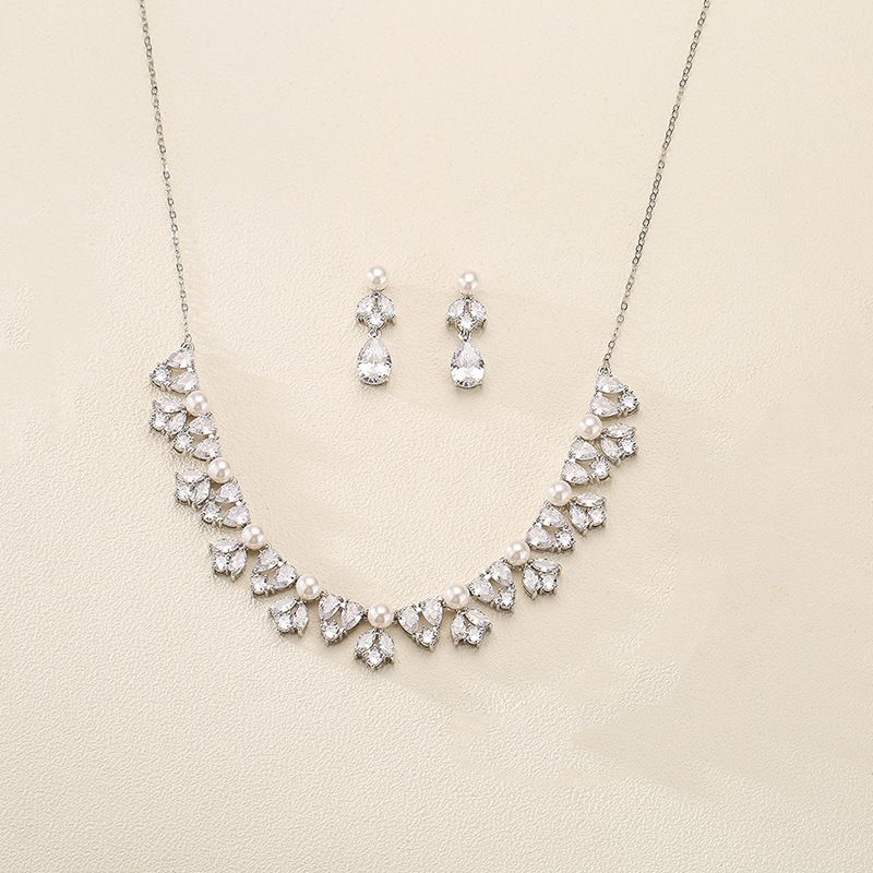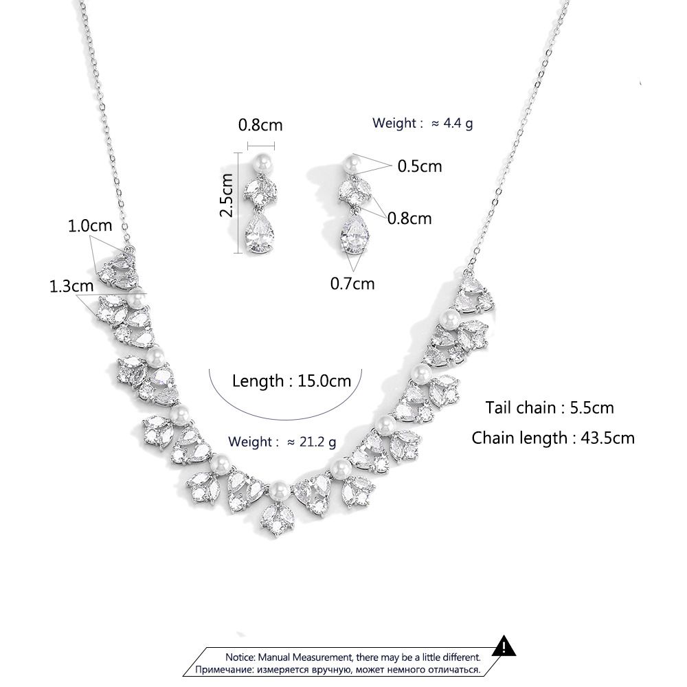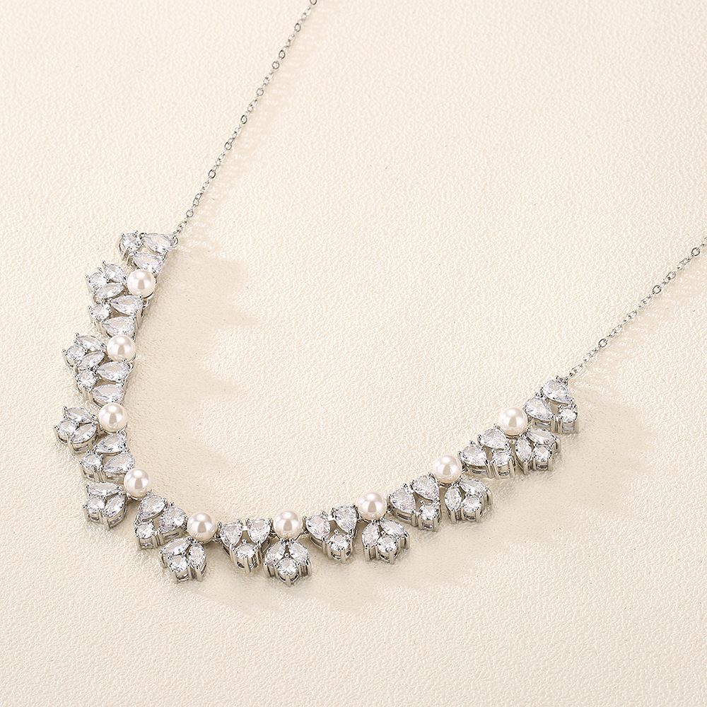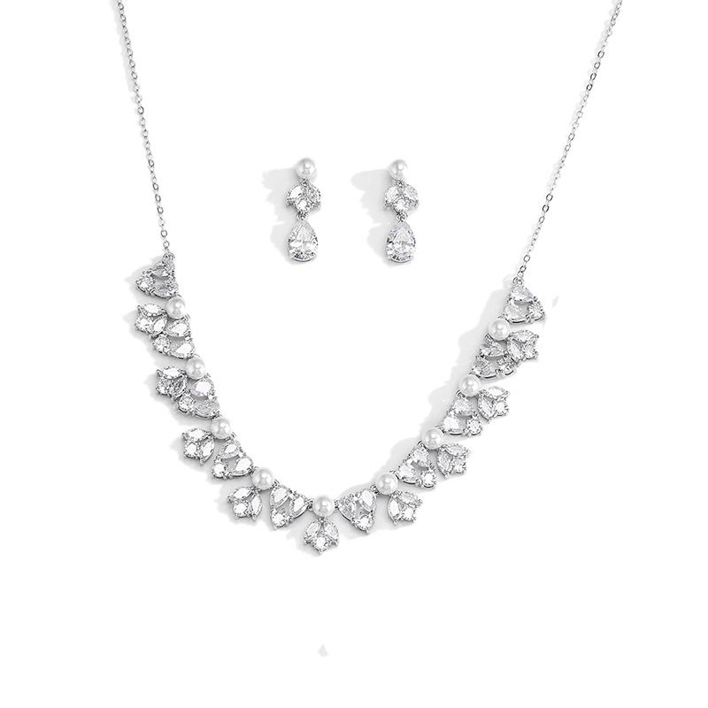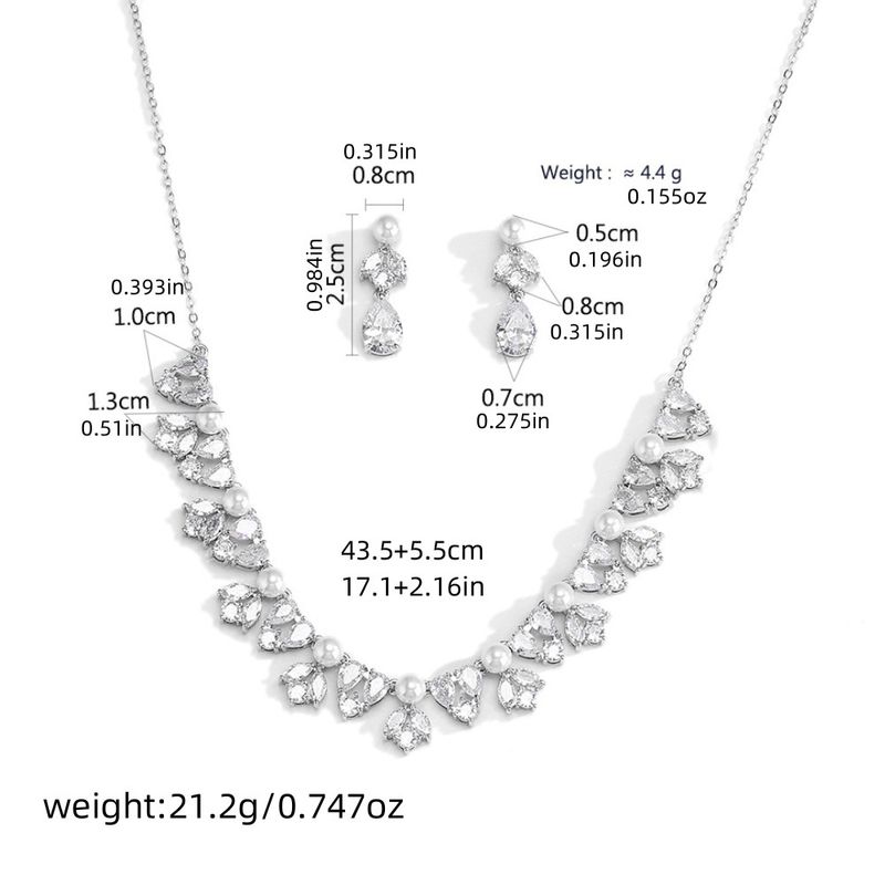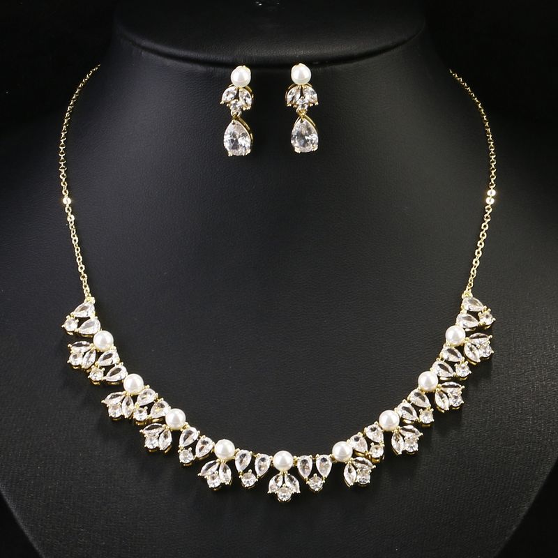 Elegant Luxury Pearl-Studded Zircon Jewelry Set Fashionable Classic Teardrop Earrings and Necklace