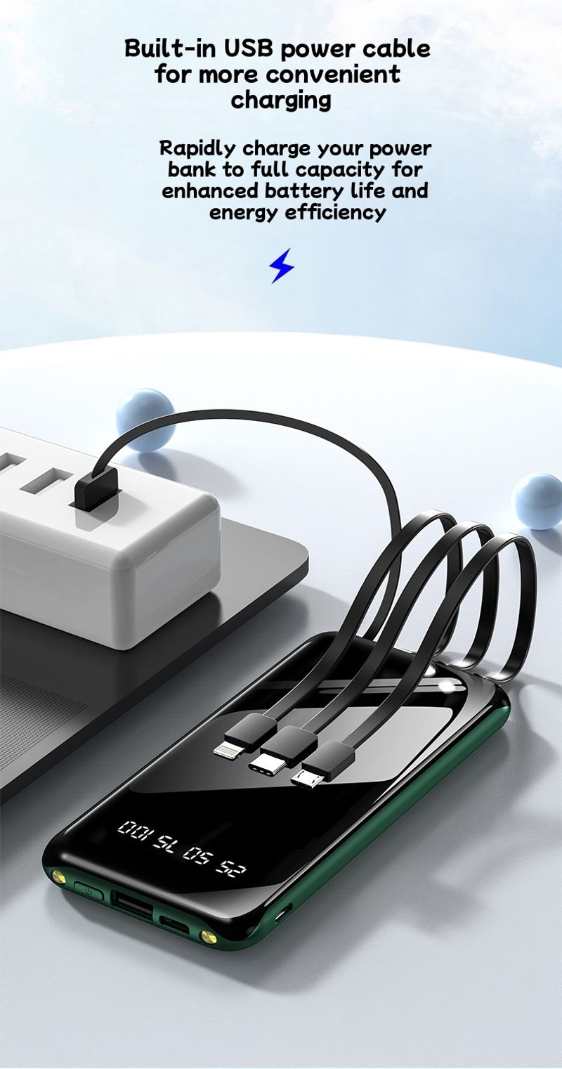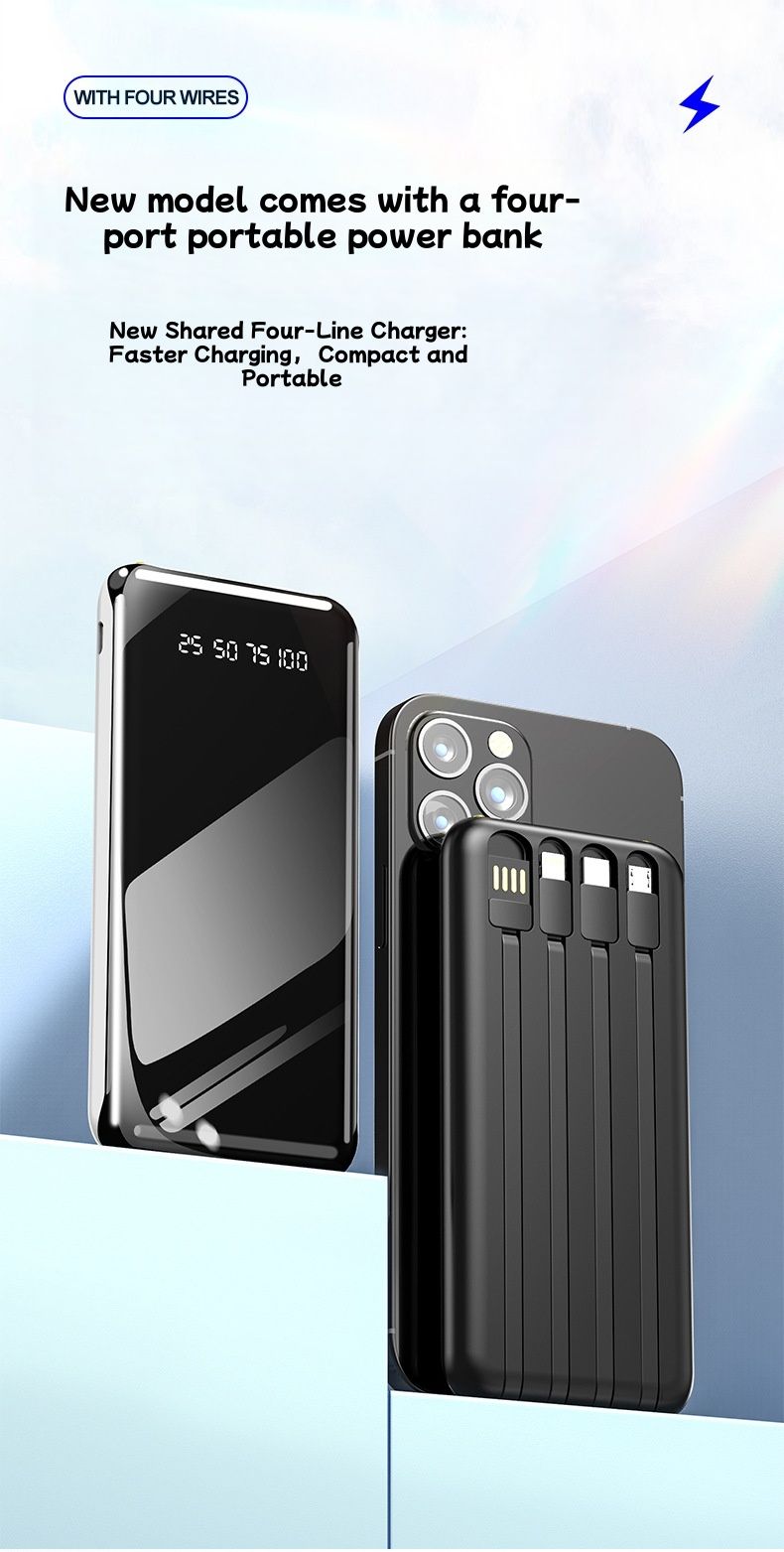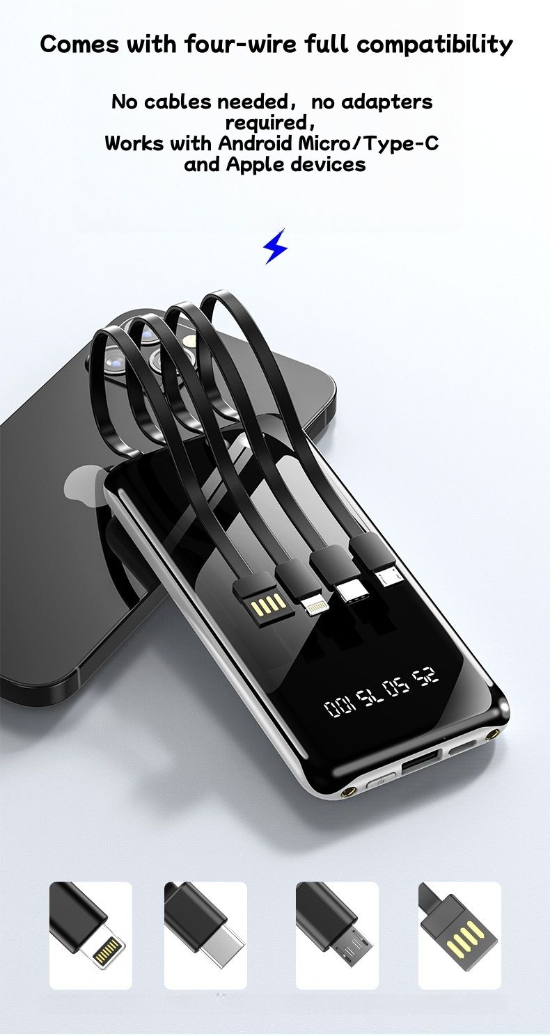 Hot-selling Ultra-Thin Wired Power Bank 20000mAh Fast Charging Universal Portable Power Bank