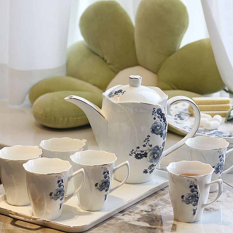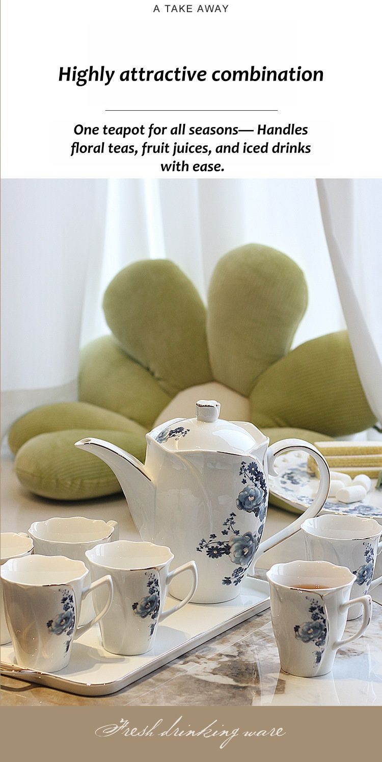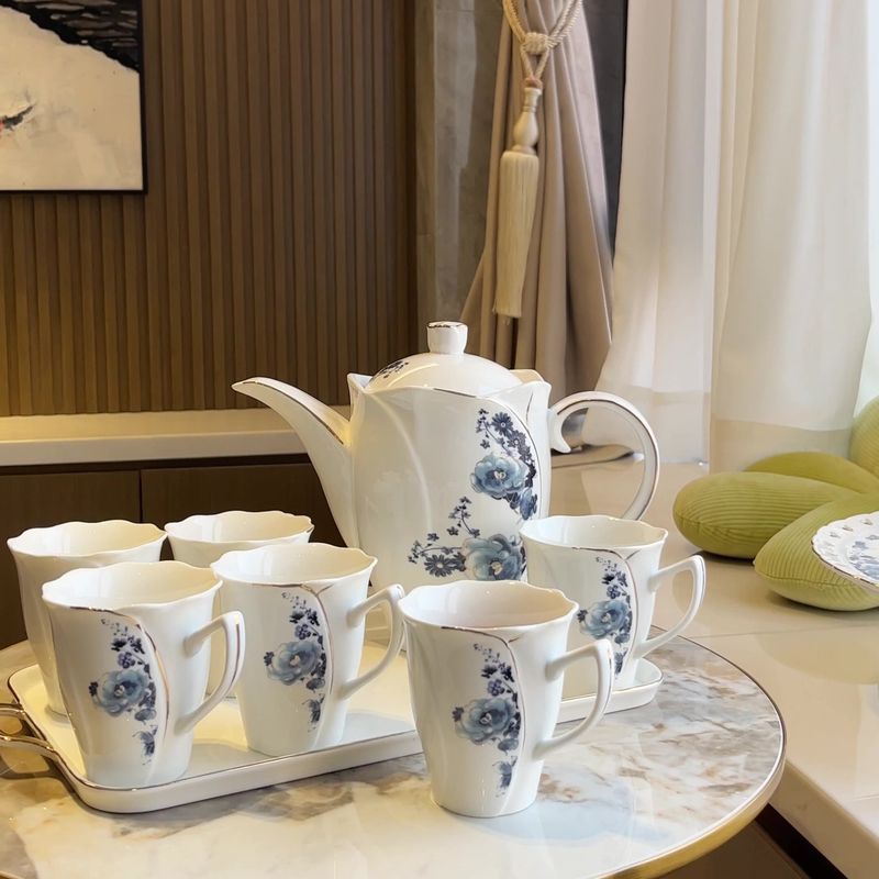 Light Luxury Ceramic Water Cup Home Set French-Style Fresh Water Set with Tray Instagram-Inspired Aesthetic