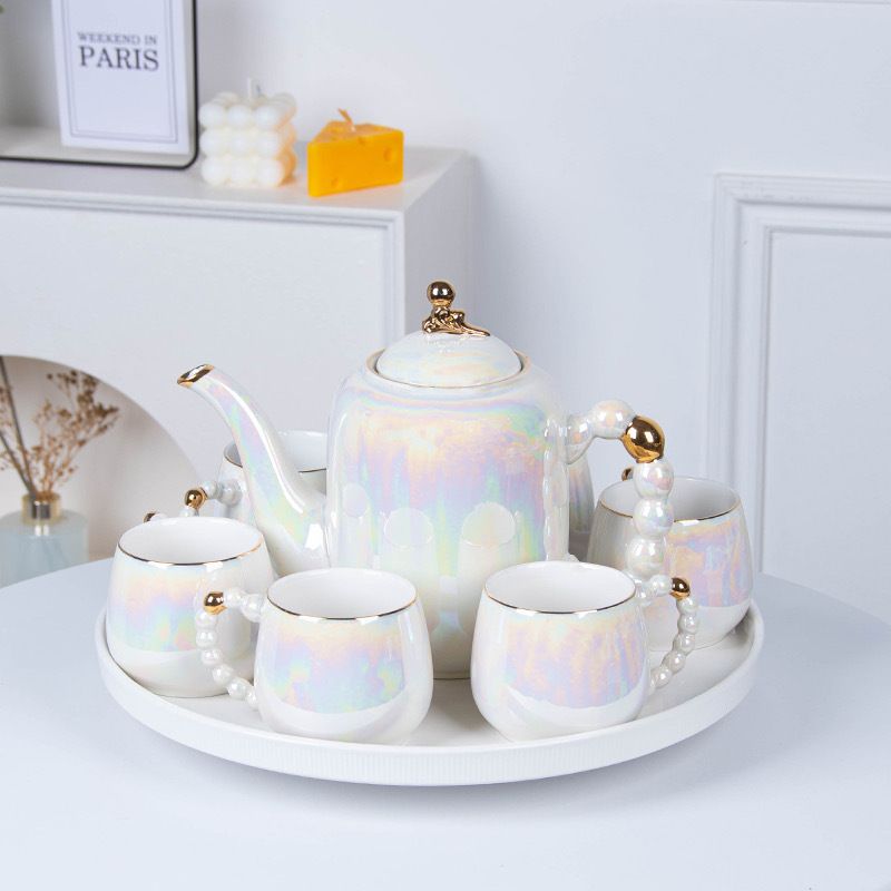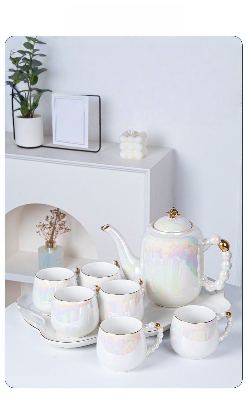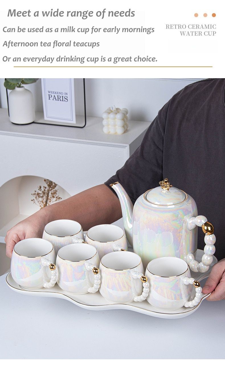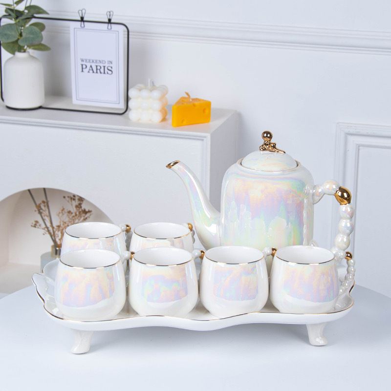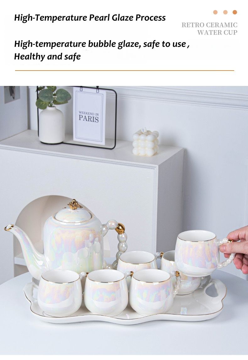 New Home Ceramic Tableware Set Ceramic Tea Set & Waterware Minimalist Creative Design Cold Water Jug, Water Cups, Teapot & Teacups