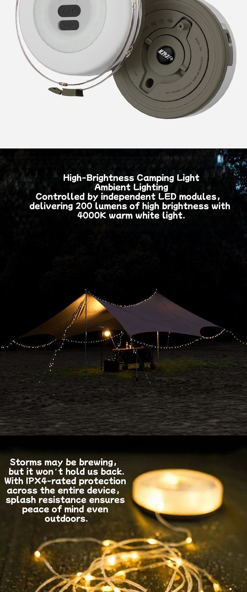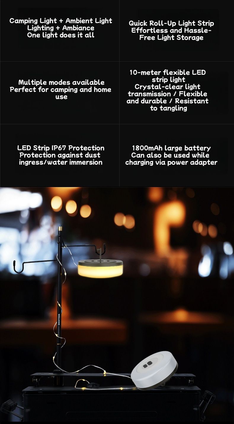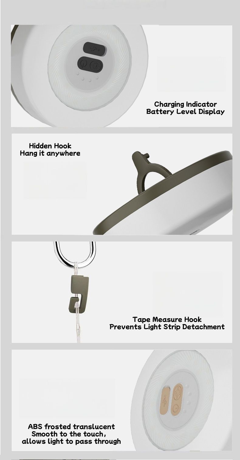 New Camping Tape Measure Light LED Ambient Light Rechargeable Outdoor Tent Light Strip Storage Camp Light