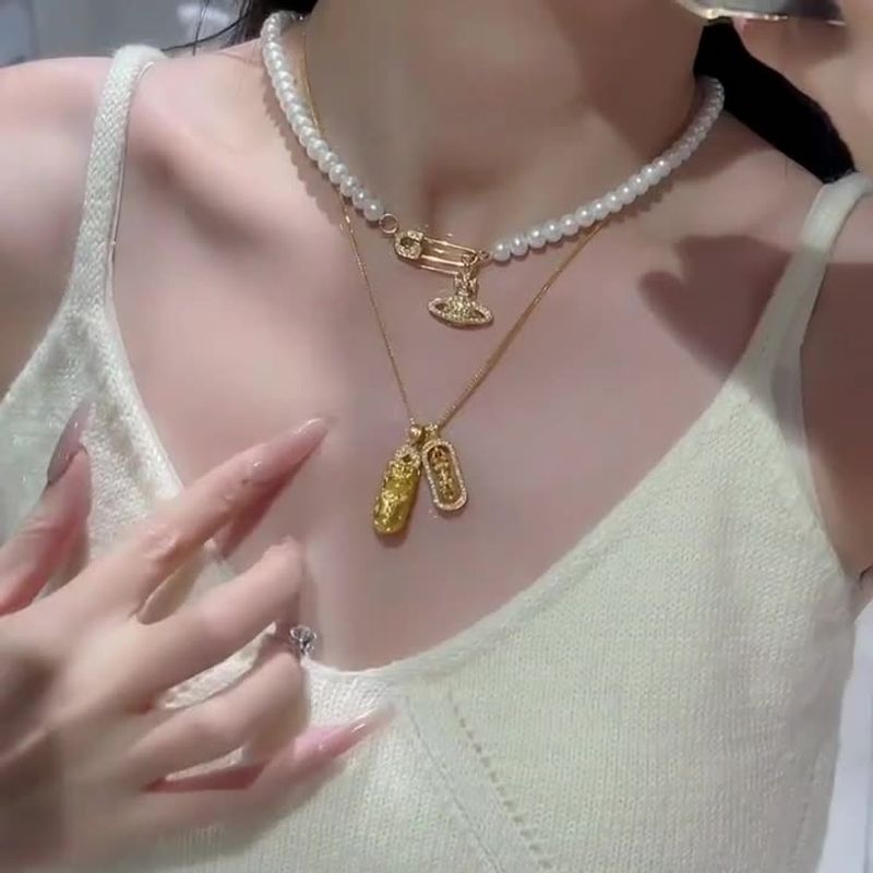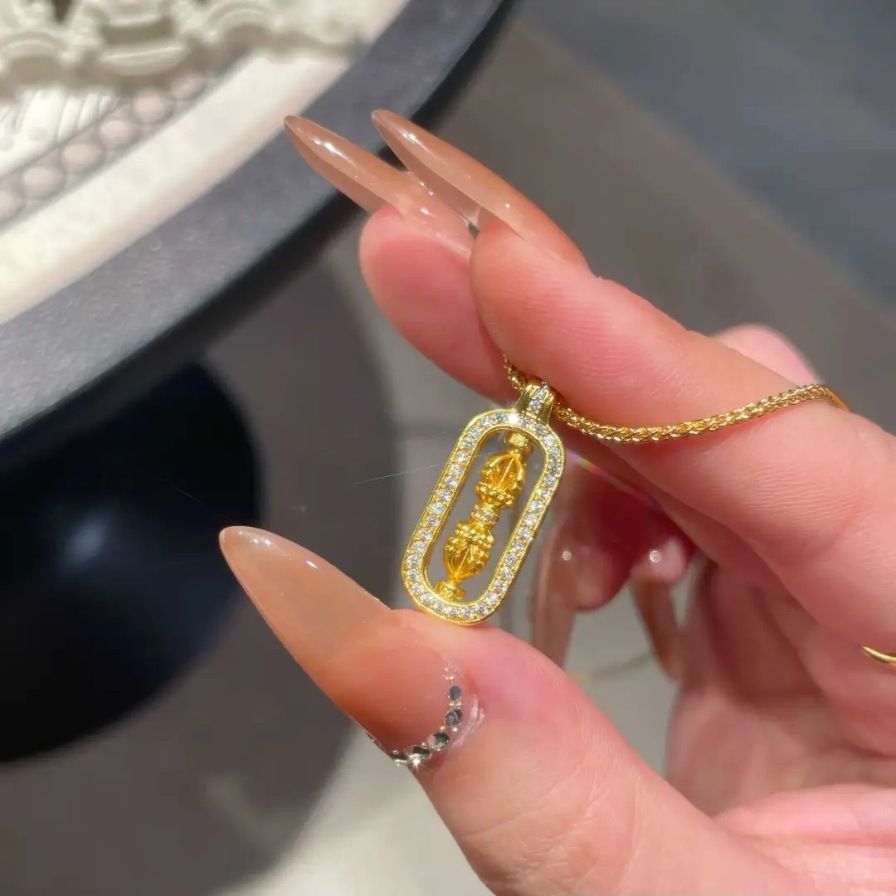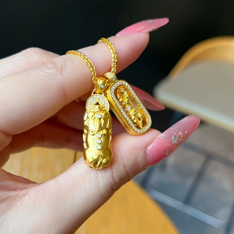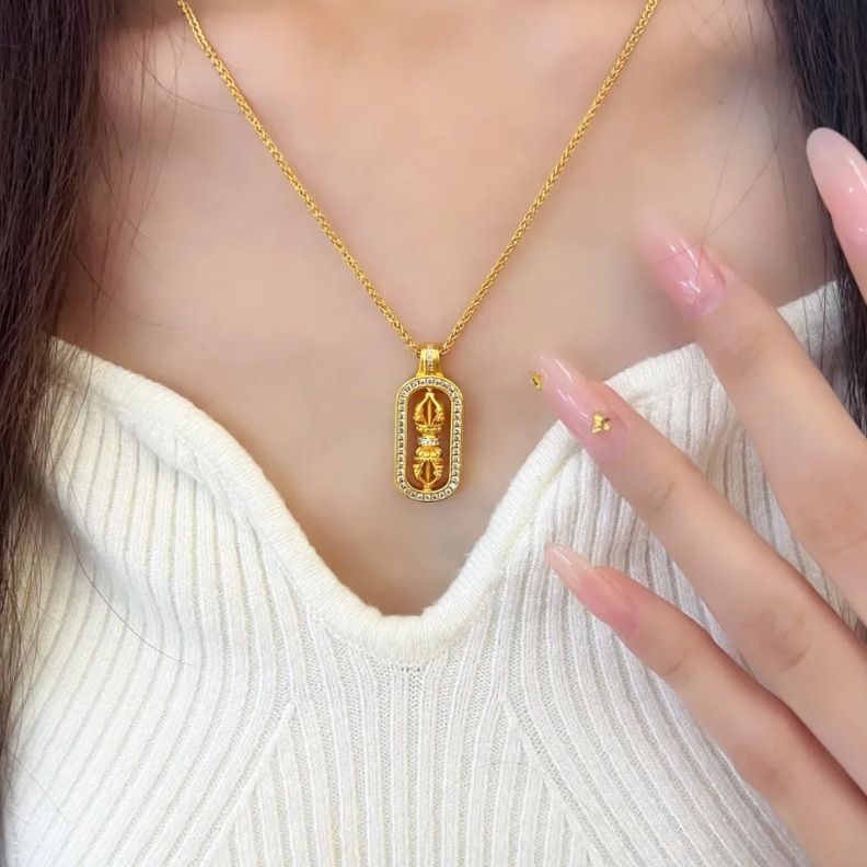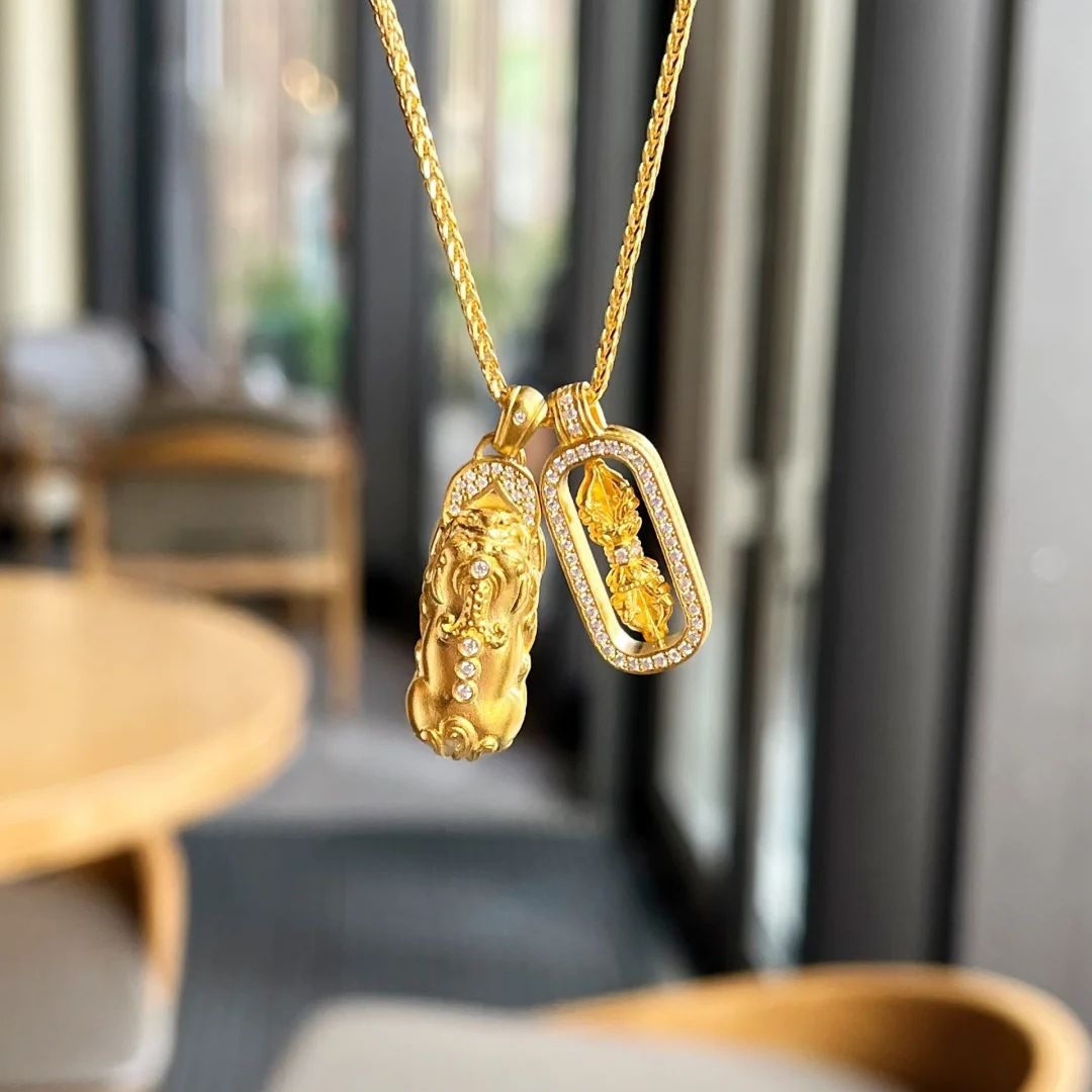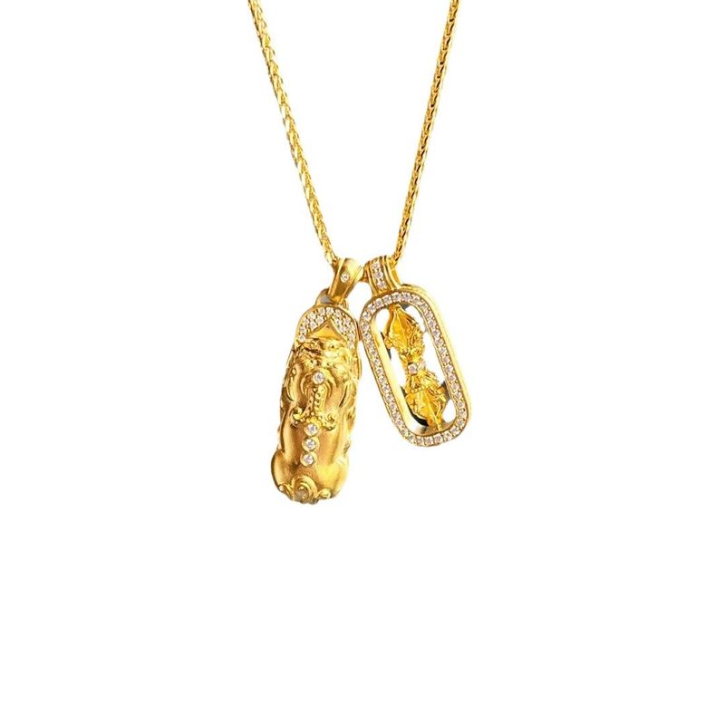 Pixiu Diamond-Studded Vajra Mace Pendant Layered on a Delicate Luxury Collarbone Chain