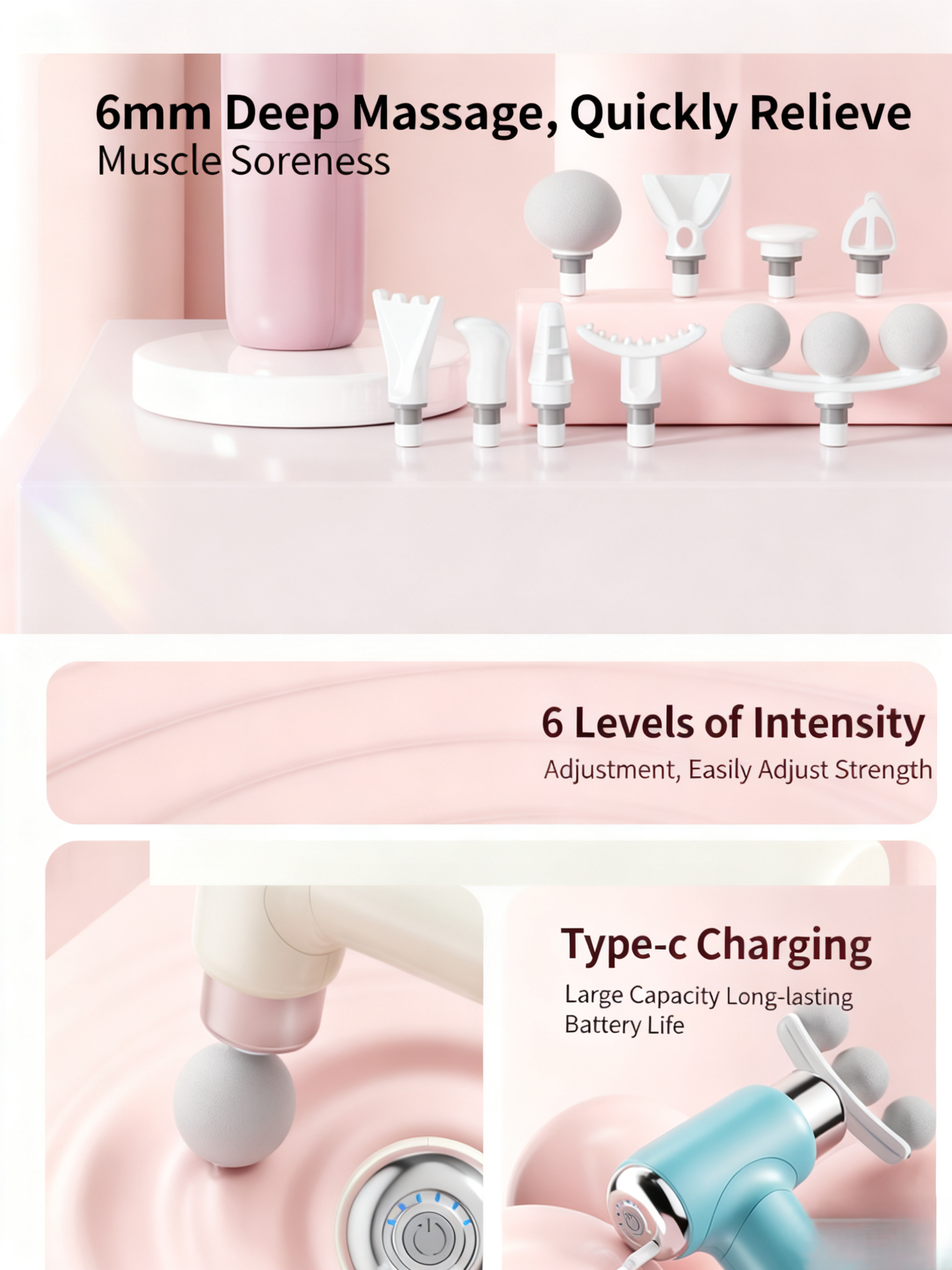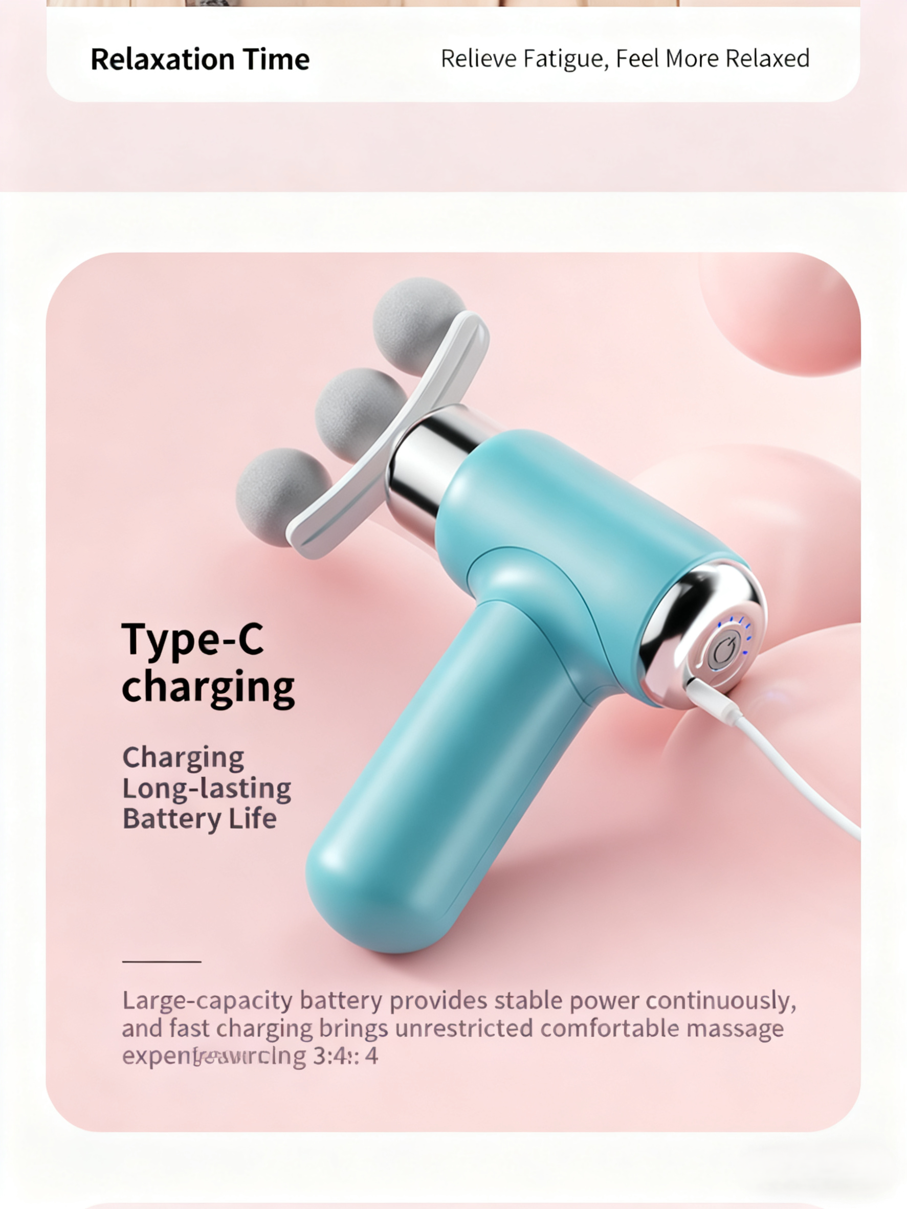Three-Headed Fascia Gun Home Mini Massager Professional Neck Relaxation Gun Multi-Functional Sports Massager for Men and Women