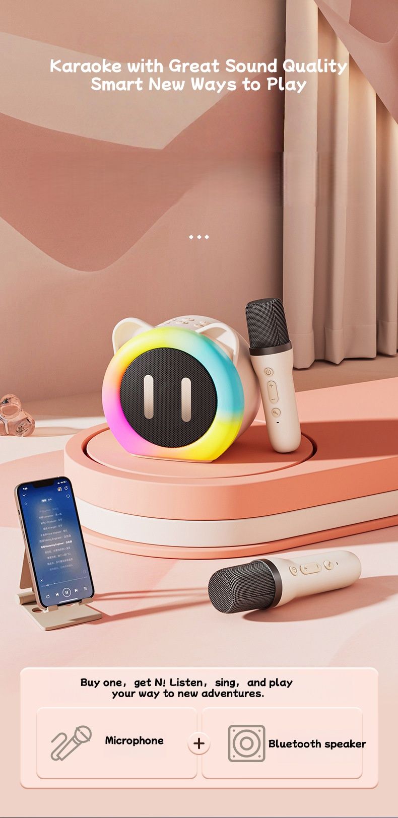 Trendy Kids' Karaoke Microphone Speaker Home Audio Microphone Wireless Bluetooth All-in-One Speaker Family KTV Entertainment Wonder